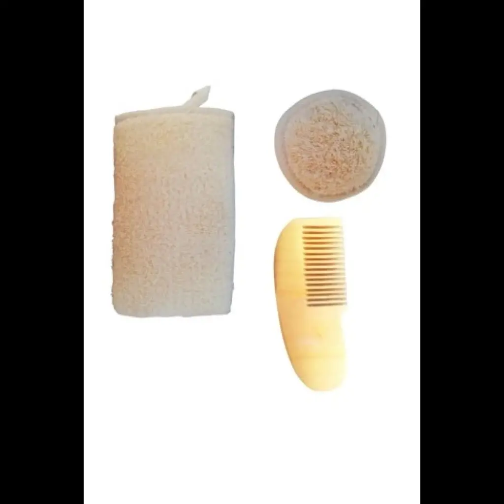 Doğal Bakım Seti: Bebek Banyo ve Bakım SetiBebeğinizin narin cildi için en doğal ve nazik bakımı sunun. Bu set, %100 doğal pamuk lifler ve limon ağacı ahşap tarak ile bebeğinizin banyo ve saç bakım rutinini hem güvenli hem de konforlu hale getirir. Hipoalerjenik ve tamamen doğal içeriği sayesinde cilt tahrişini önler, bebeğinizin cildinin rahatça nefes almasını sağlar.Bu pratik set, yeni doğanlar için ideal bir hediye seçeneği sunar. Banyo lifiyle nazikçe sabunlayabilir, yüz lifiyle hassas yüz bölgesini temizleyebilir ve ahşap tarakla bebeğinizin saçını yumuşakça tarayabilirsiniz. Tek bir pakette sunulan bu set, ihtiyacınız olan her şeyi bir araya getirerek işinizi kolaylaştırır.Ürün ÖzellikleriMalzeme: %100 doğal pamuk lifler ve limon ağacı ahşap tarak.Hipoalerjenik: Hassas bebek ciltleri için özel olarak üretilmiştir.Kullanım Alanı: Banyo, yüz temizliği ve saç bakımı.Fonksiyonellik: Cilt sağlığını korur, tahrişi önler ve kan dolaşımını destekler.Paket İçeriği: Banyo lifi, yüz lifi ve ahşap tarak.Hediye Olarak: Yenidoğanlar için mükemmel bir hediye setidir.