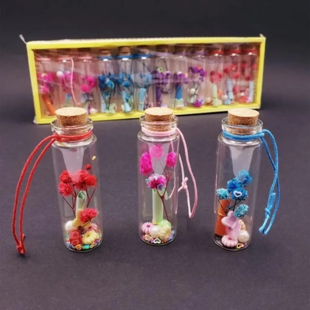 TOPTAN 12'Lİ DİLEK ŞİŞESİDilek şişesi tamamen cam malzemeden üretilmiştir.Her bir şişenin içerisinde farklı renklerde bir boş kağıt ve bir renkli gül bulunmakta.ÜRÜN ÖLÇÜSÜ :Yükseklik 7 cm Genişlik 2.5 cm