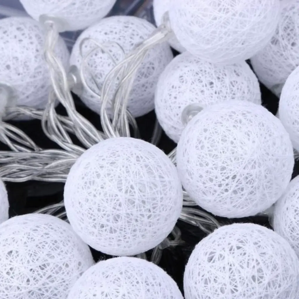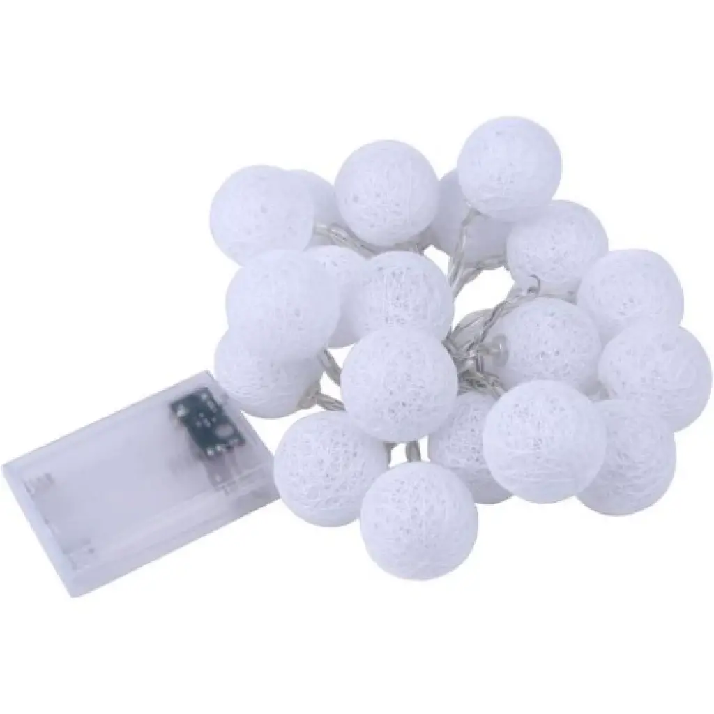 2m 10'lu Işıklı Beyaz Top Dekoratif Süs Pilli