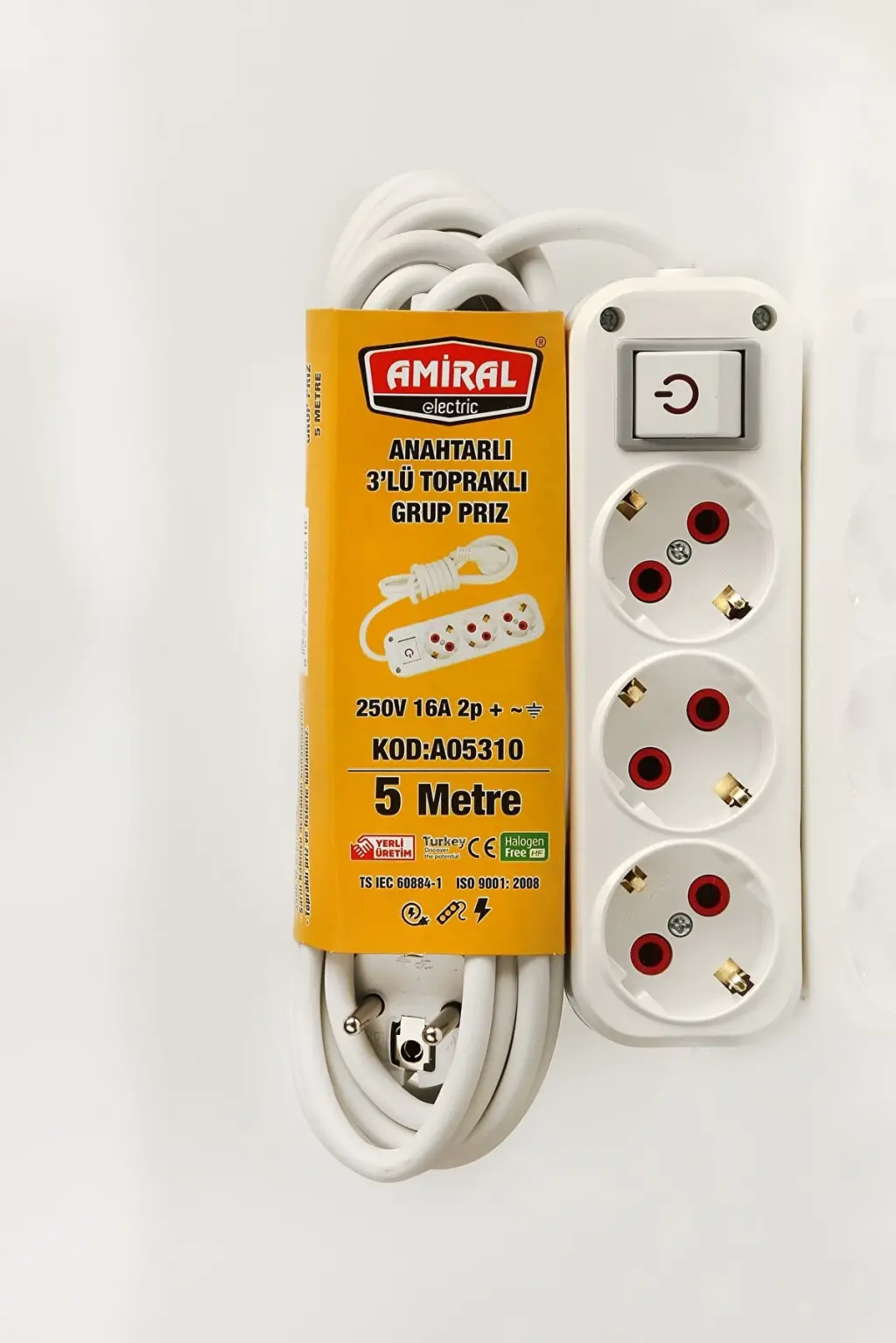 5 Metre Anahtarli 3'lü Uzatma Kablosu