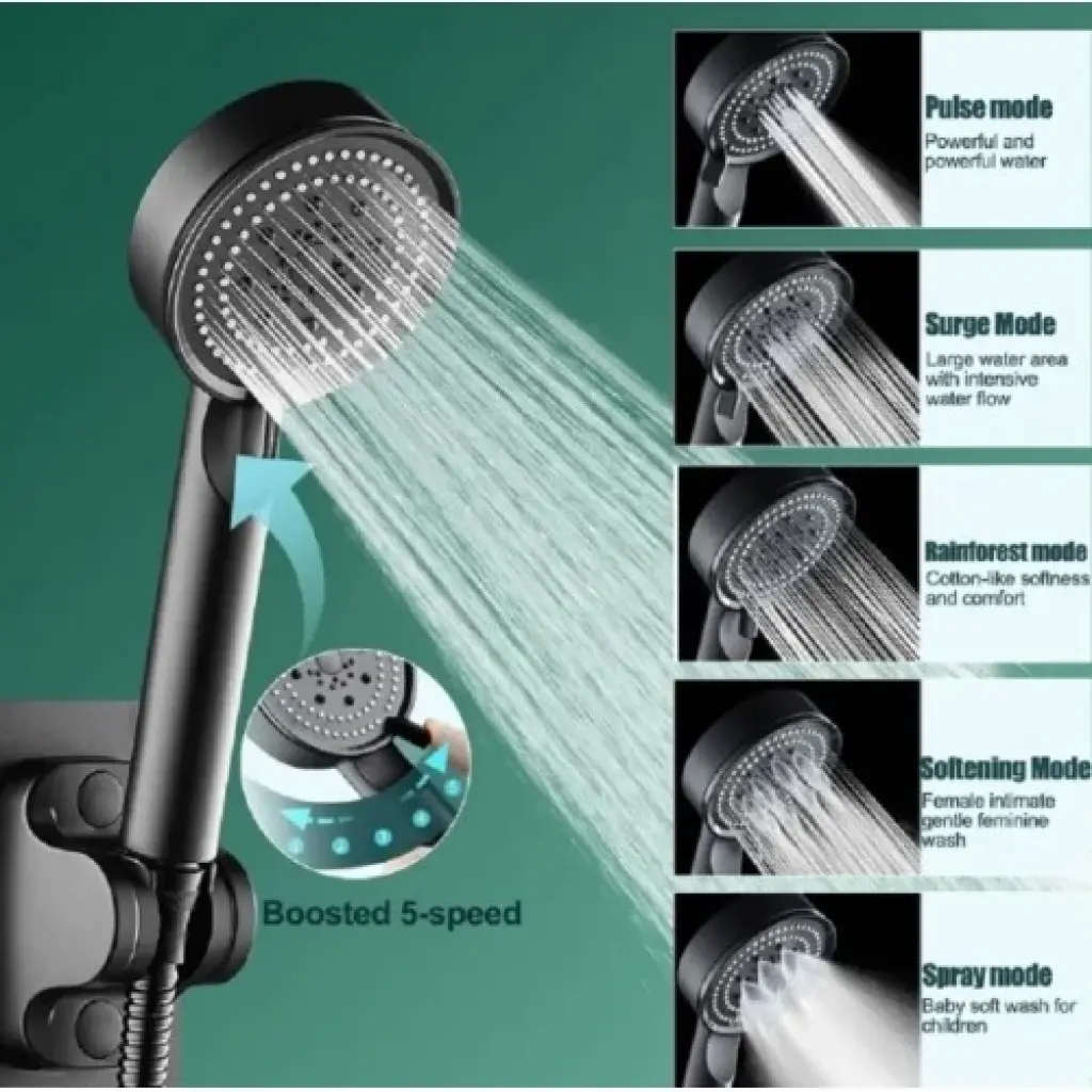 5 Kademeli Duş Başlığı Siyah:Bu siyah ve 5 fonksiyonlu duş başlığı, banyo deneyiminizi geliştirmek için tasarlanmış şık ve işlevsel bir üründür. İşte özellikleri:Beş Farklı Fonksiyon: Duş başlığı beş farklı fonksiyon seçeneği sunar, böylece istediğiniz duş deneyimini seçme özgürlüğüne sahip olursunuz. Rahatlamak, dinlenmek veya enerji depolamak için idealdir.Kurulum Kolaylığı: Ürünün kurulumu oldukça kolaydır ve standart duş başlığı boyutlarına uyacak şekilde tasarlanmıştır. Böylece hızlı bir şekilde monte edebilir ve kullanmaya başlayabilirsiniz.Modern Tasarım: Duş başlığının modern ve şık tasarımı, banyonuza estetik bir görünüm kazandırır. Siyah rengi ile diğer banyo ekipmanlarıyla uyum sağlar ve banyonuza çağdaş bir hava katar.Dayanıklılık: Kaliteli malzemelerden üretilmiş olan bu duş başlığı, uzun süre dayanıklılığını korur ve güvenle kullanılabilir.Paket İçeriği: Tek paket içerisinde 1 adet 5 kademeli duş başlığı bulunmaktadır. Bu şekilde tek bir satın almayla ihtiyacınızı karşılayabilirsiniz.Bu duş başlığı, banyo deneyiminizi daha keyifli hale getirmek ve istediğiniz duş deneyimini yaşamanıza olanak tanımak için ideal bir seçenektir