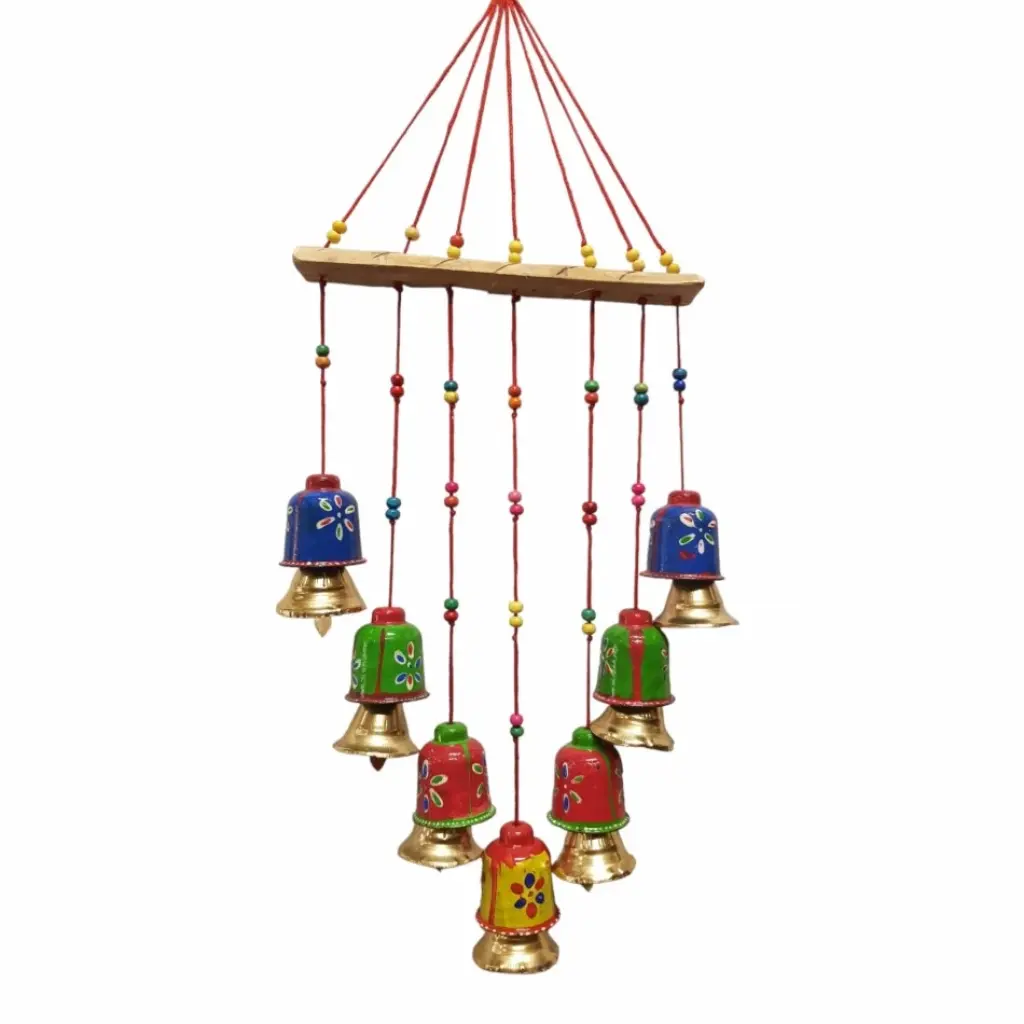 Seramik Yedi Adet Filli Nazar Boncuklu Rengarenk Tahta Boncuklu Kapı, Duvar ve Bahçe Süsü