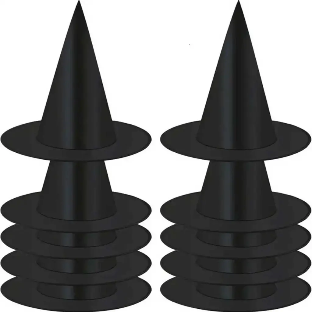 8 Adet Siyah Cadı Şapkası – Yetişkin ve Çocuk Kostüm Aksesuarı Polyester