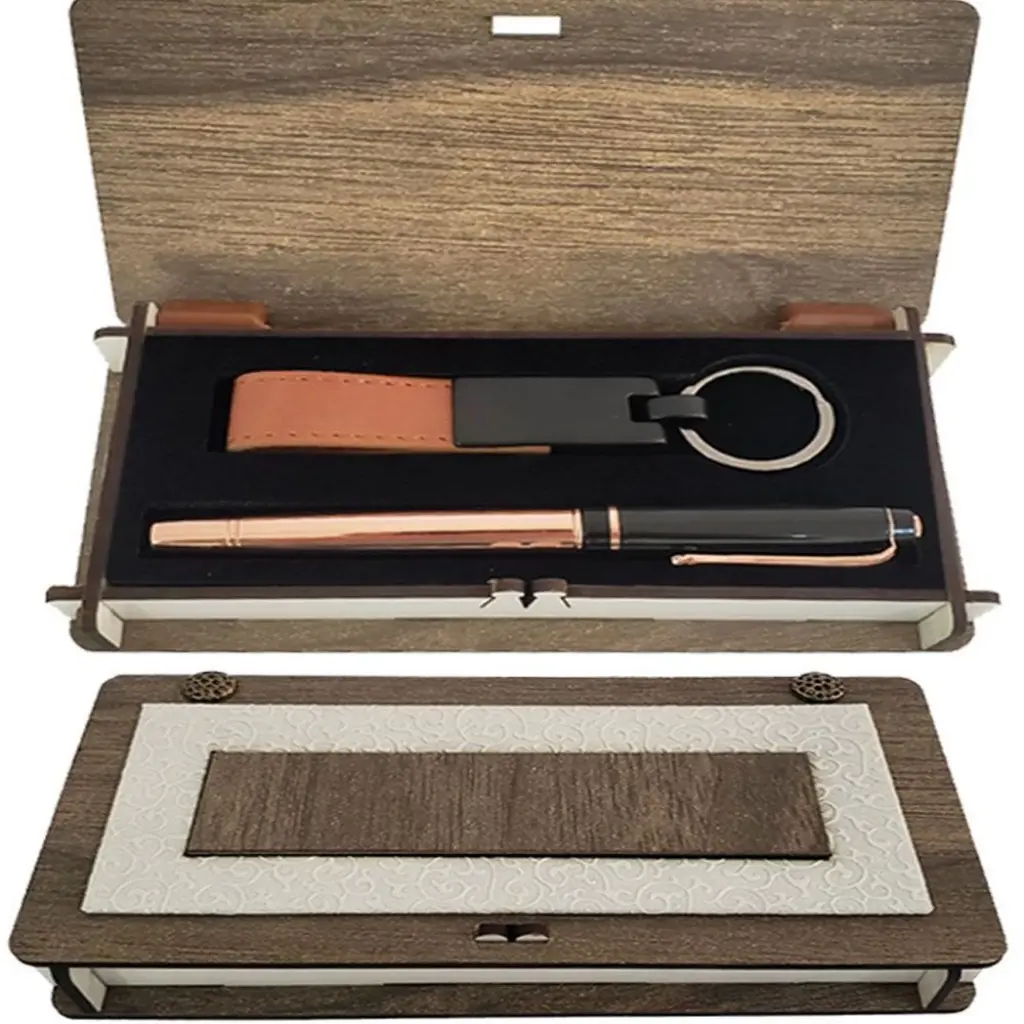 Ahşap Kutulu Set Bakır Roller Kalem ve Anahtarlık