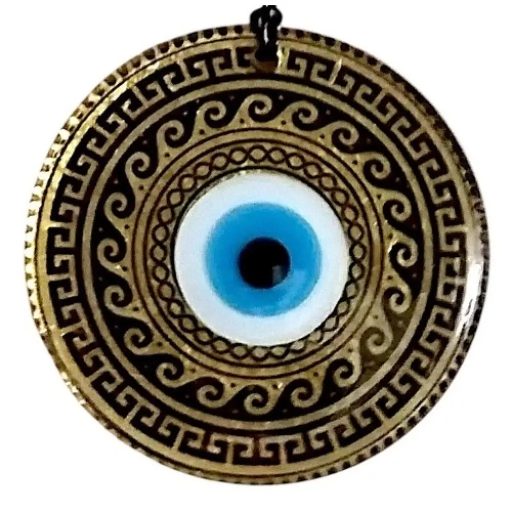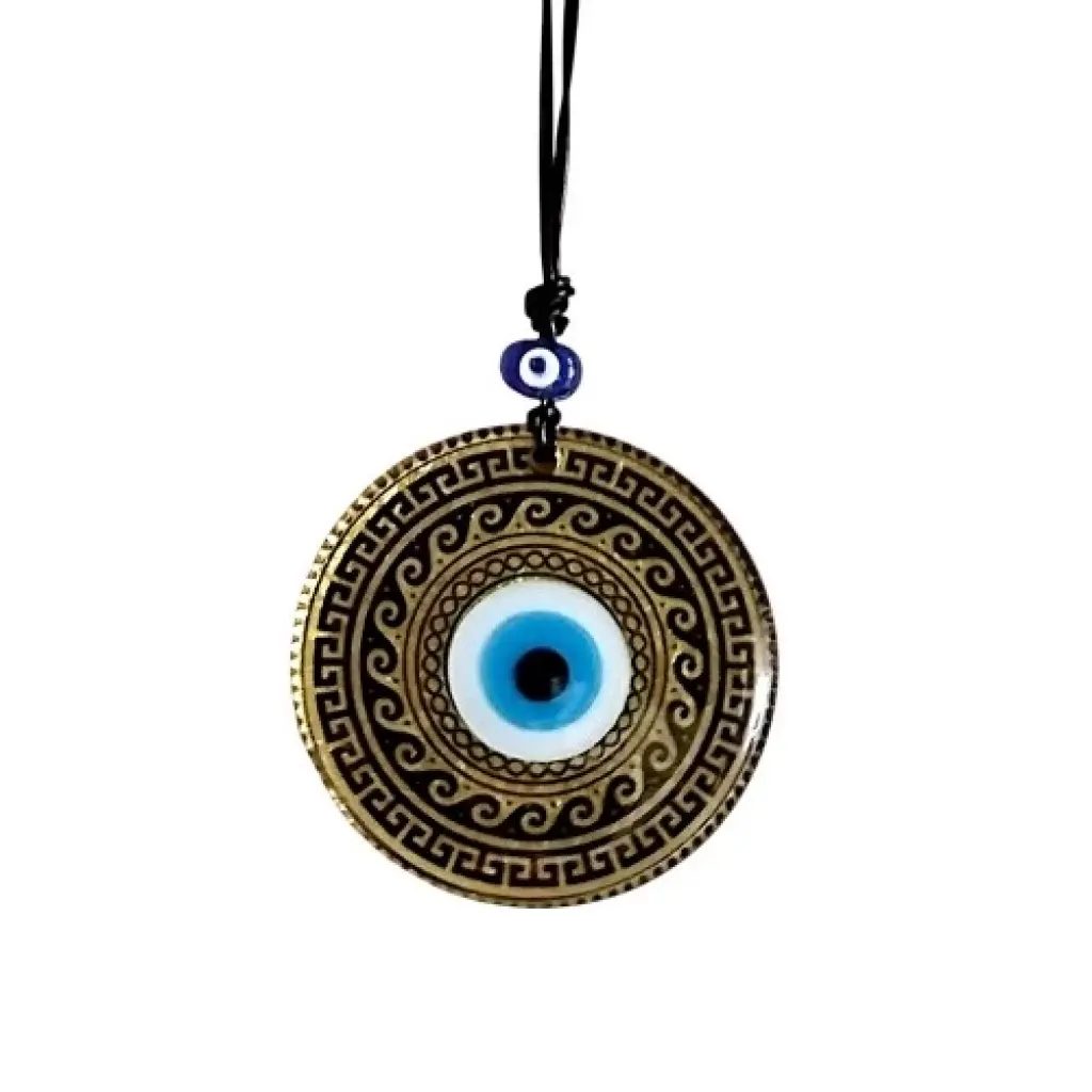 Altın varak Motifli duvar süsümüz tamamen el işçiliği ile üretilmiştir.Tabanı Altın renkli olup Tasarım harikası olan el yapımı Altın varaklı ve Nazar boncuklu olan duvar süsümüz 12 santimetre Çapındadır. Ürünümüz ip dahil 25 santimetre boyundadır.