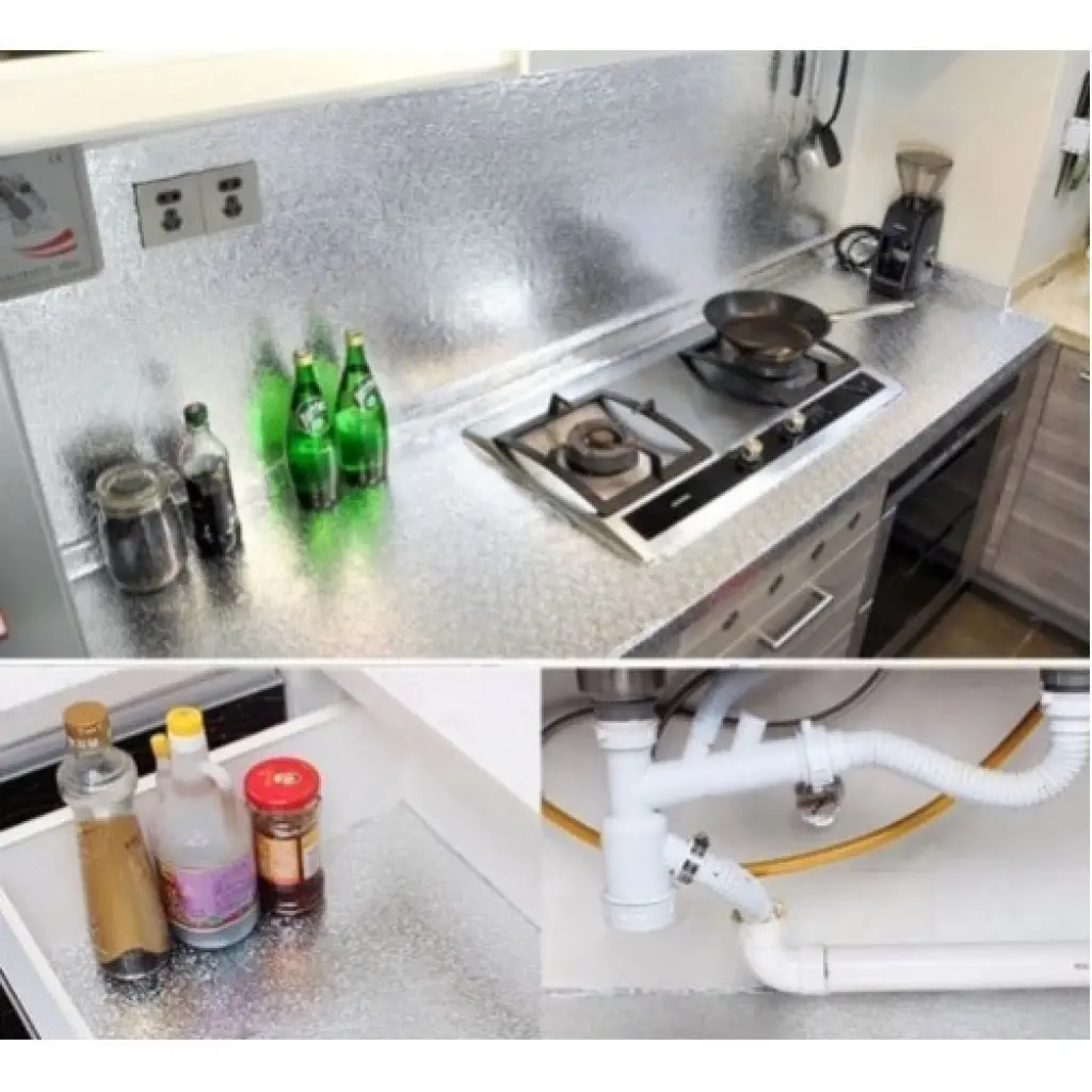 Alüminyum Folyo Yapışkanlı Mutfak Koruyucu FolyoÜrün Açıklaması:Bu alüminyum folyo yapışkanlı mutfak koruyucu kağıt, mutfak tezgahlarınızı, dolaplarınızı ve diğer yüzeylerinizi yağ, su ve kirden korumak için idealdir. Dayanıklı ve yüksek kaliteli malzemesi sayesinde uzun süre kullanılabilir. Kolayca yapışır ve çıkarılır, bu da temizlik ve düzen sağlamak için idealdir. Hem estetik bir görünüm sunar hem de mutfak yüzeylerinizi korur. Kullanımı kolaydır ve farklı yüzeylerde pratik bir koruma sağlar.Ürün Ölçüleri: Genişlik: 60 cm Uzunluk: 2 metrePaket içeriği : 1 Adet Alüminyum Folyo Yapışkanlı Mutfak Koruyucu Folyo 2 Metre