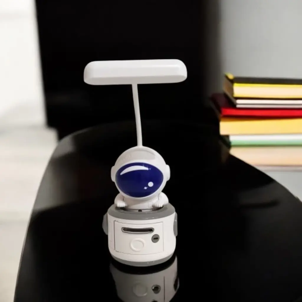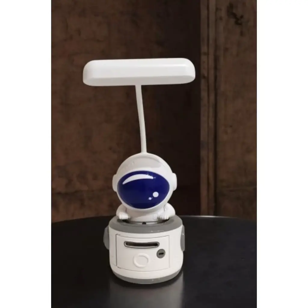 Masa lambası ürünümüzün eni 8santimetredir. Astronotun boyu 12 cm olup ürünün tamamının boyu 25 santimetredir. Ürünümüzde kumbara özelliği bulunmaktadır. Ön kısım anahtarlıkla açılıp kapanabilmektedir.Masa Lambası kısmı şarjlıdır. Type-C kablo ile şarj olmaktadır.Kutu içerisinde 1 adet Type-C şarj kablosu bulunmaktadır.Ürün ışığının 3 derecesi bulunmaktadır. Arkadaki düğmeye basılarak ayarlanır.