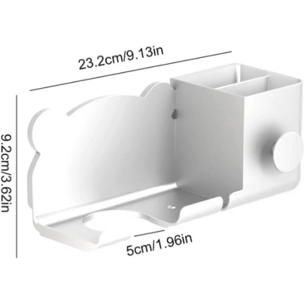 AYICIK FİGÜRLÜ SAÇ KURUTMA MAKİNESİ TUTUCUÜrün ÖzellikleriPratik tasarımı sayesinde saç kurutma makinesi, düzleştirici, tarak ve diğer aksesuarlar için çok bölmeli bir yapı sunar. Güçlü yapışkanı sayesinde duvara kolayca monte edilebilir. Kaliteli ve dayanıklı plastik malzemeden üretilmiştir, uzun süreli kullanım için uygundur. Banyo tezgahında yer açarak düzen sağlar ve pratik bir kullanım imkânı sunar. Minimalist ve sade tasarımı, beyaz rengiyle her banyo dekorasyonuna uyum sağlar. Çok amaçlı kullanım olanağıyla saç kurutma makinesinin yanı sıra tarak, fırça ve kablo gibi aksesuarları düzenli bir şekilde saklamak için idealdir.Paket İçeriği1 adet ayıcık figürlü saç kurutma makinesi tutucu.