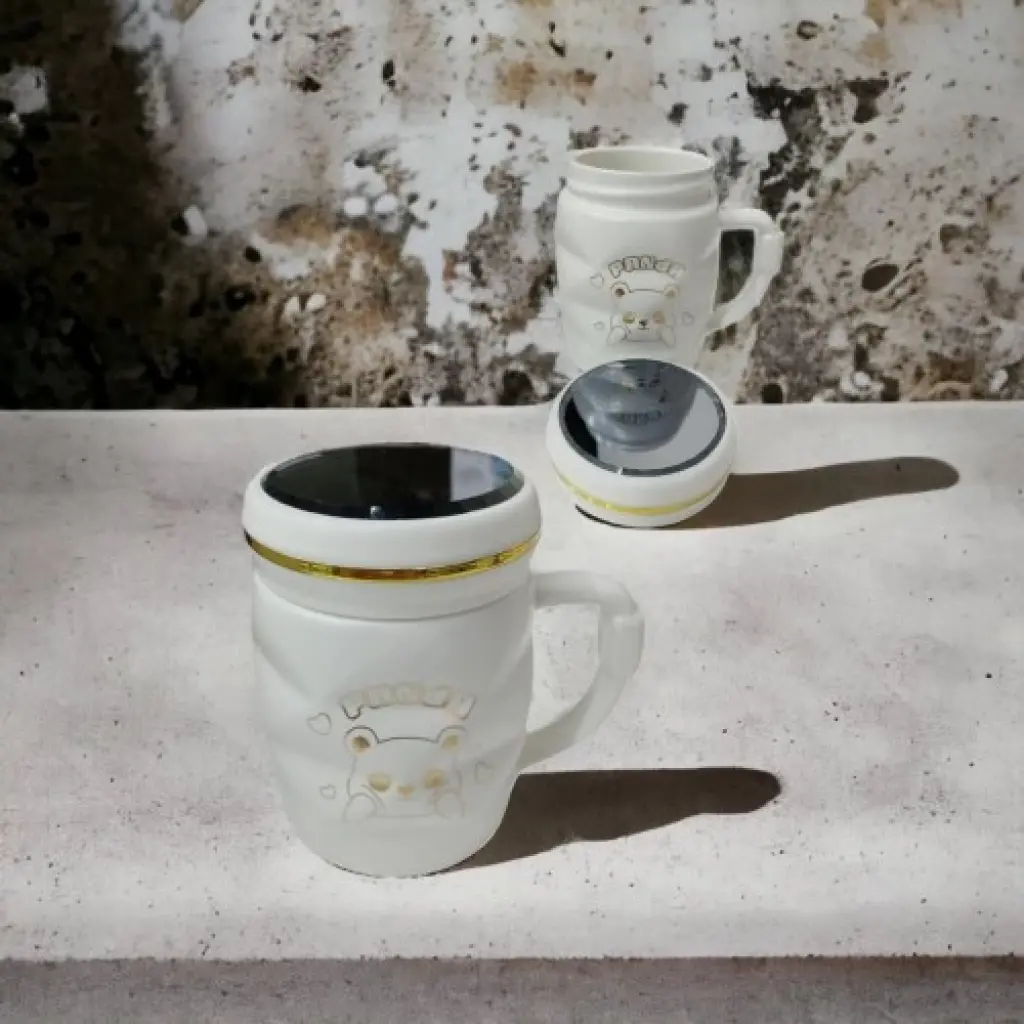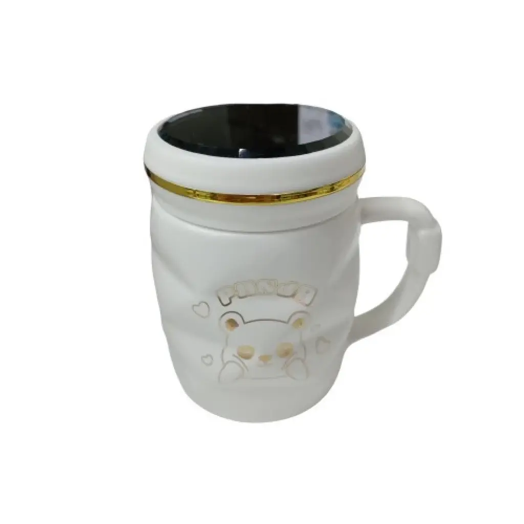 Ayna Kapaklı Panda Desenli Porselen Kupa Bardak Beyaz Kupa Bardak
