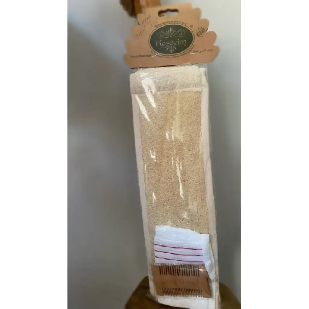 %100 Doğal Uzun Sırt Kabak Lifi, Vücut Kesesi, Şimşir Tarak Seti, hamam ve evde cilt bakımınız için kullanabileceğiniz, kaliteli malzemelerden üretilmiş bir settir.Setin içeriği:Uzun Sırt Kabak Lifi: %100 doğal kabak lifinden üretilmiş, cilt temizliği ve ölü derilerden arındırma için kullanılan bir kesedir. Uzun sapı sayesinde sırtınızı kolayca keseleyebilmenizi sağlar.Vücut Kesesi: %100 doğal kabak lifinden üretilmiş, cilt temizliği ve ölü derilerden arındırma için kullanılan bir kesedir. Elinize rahatça oturacak şekilde tasarlanmıştırŞimşir Tarak: %100 doğal şimşir ağacından üretilmiş, saç ve sakal bakımını kolaylaştıran bir taraktır. Saçlarınızın ve sakalınızın sağlıklı ve parlak görünmesine yardımcı olur.Setin faydaları:Cildinizi ölü derilerden arındırır ve daha sağlıklı görünmesini sağlar.Kan dolaşımını hızlandırarak cildinizin daha canlı görünmesine yardımcı olur.Saçlarınızın ve sakalınızın sağlıklı ve parlak görünmesini sağlar.Kullanışlı ve pratiktir.Dikkat edilmesi gerekenler:Keseleri kullanım sonrası sabunlu suyla yıkamalı ve sıkılmalıdır.Tarak, kullanım sonrası temiz bir bezle silinmelidir.%100 Doğal Uzun Sırt Kabak Lifi, Vücut Kesesi, Şimşir Tarak Seti, hamam ve evde cilt bakımınız için kullanabileceğiniz, kaliteli ve kullanışlı bir settir.