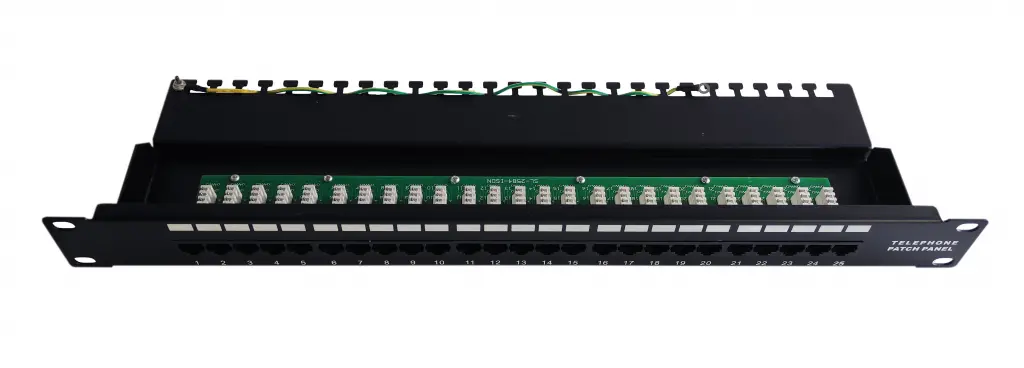 Beek 25 port CAT 3 ISDN Patch Panel, zırhsız, 8P4C, LSA, 1U, kabinete monte edilebilirBeek CAT 3 ISDN Patch Panel, unshielded, 25-port RJ45, 8P4C, LSA, 1U, rack mount