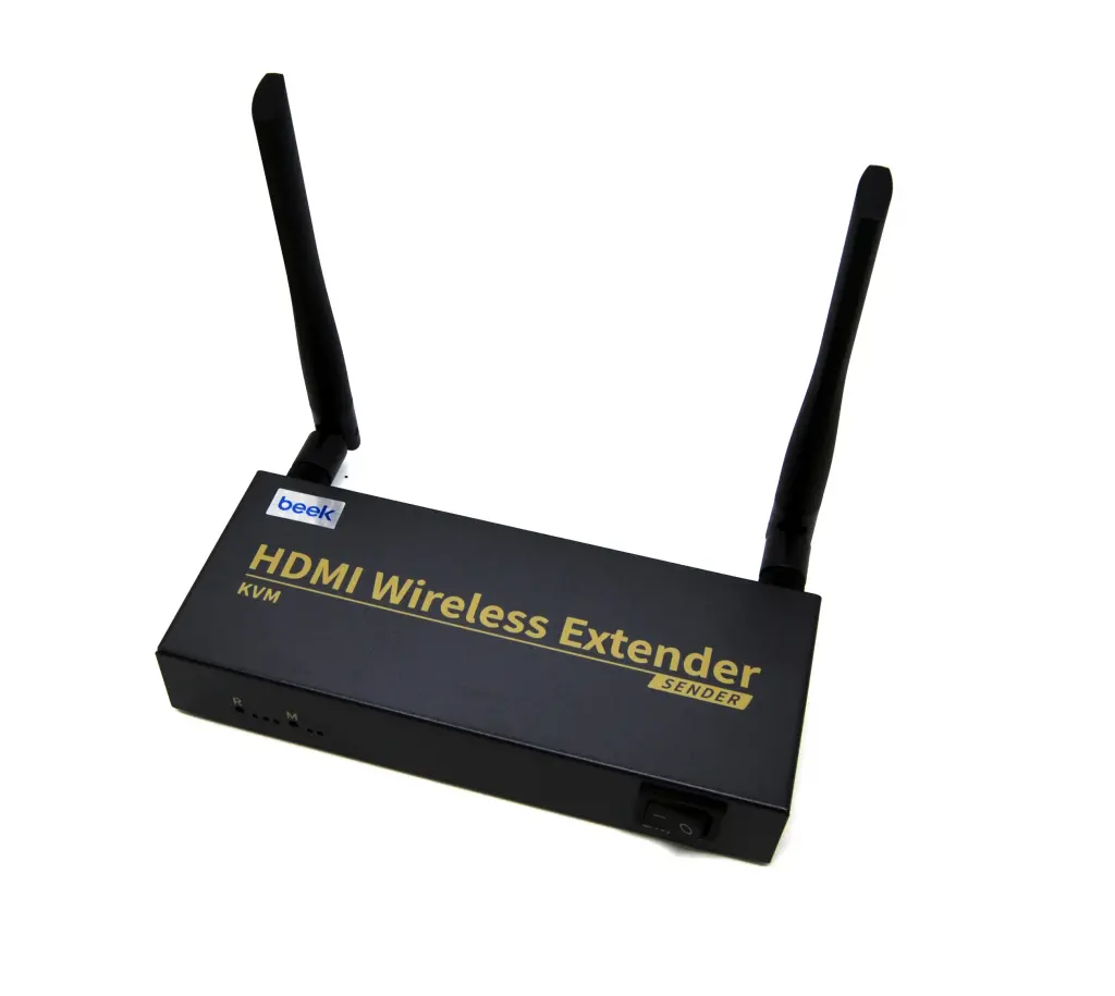 Verici/Sender ünite bağlantı arayüzleri: 1 x HDMI® giriş (bilgisayar bağlamak için), 1 x HDMI® çıkış (HDMI ekran), 1 x AUX ses girişi, 1 x USB giriş (bilgisayar bağlamak için), 1 x kızılötesi (IR) çıkış (uzaktan kumanda kontrolü için), 1 x DC12V güç girişi (güç adaptörü bağlamak için), 1 x güç açma/kapama düğmesi