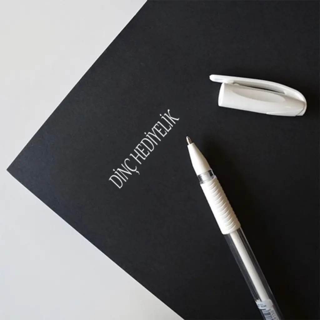 Beyaz Jel Kalem Beyaz Jel Kalem İle Siyah Yapraklı Defterlerinize Yada Notluklarınıza Beyaz Kalem İle Yazabileceksiniz.Beyaz Jel Kalemin Uç Kısmı Kaliteli Olup Akışkan Mürekkepi Sayesinde Mükkemel Ve Yumuşak Yazmanızı Sağlar.Konforlu Ve Ergonomik Bir Tutuş İçin Yuvarlak Bir Tasarıma Sahiptir.Ürün Özellikleri:* Siyah (KARA) Deftere Yazmak İçin Uygundur.* Beyaz Yazmaktadır.* 1 mm Elmas Uç.* Güvenli Kapak.* Akıcı Ve Yumuşak Yazım.