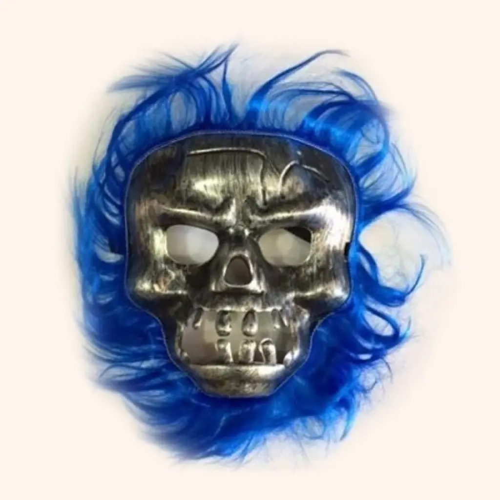 Cadılar Bayramı Maskesi LacivertÜRÜN DETAYLARICadılar Bayramı Kurukafa MaskesiMaskenin etrafı lacivert saçlarla çevrilmiştirKaliteli plastik malzemeden üretilmiştirStandart Yetişkin ve Çocuk Uyumlu Lastik aparatı sayesinde yüze tam oturur