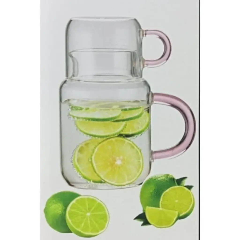 Ürün ÖzellikleriCam Bardak Sürahi, hem bardak hem de sürahi olarak kullanılabilen çok amaçlı bir tasarıma sahiptir. Üst kısmında yer alan bardak, alt kısmı ise sürahi olarak kullanılmaktadır. Şeffaf cam gövdesi ve renkli kulp detayı ile modern bir tasarıma sahiptir. Saplı tasarımı sayesinde tutuş kolaylığı sağlar. 690 ml kapasiteye sahiptir ve su, meyve suyu, limonata gibi içecekleri servis etmek için idealdir. Mutfakta veya ofiste pratik kullanım için şık bir çözümdür.Ürün farklı renklerde mevcuttur ve stok durumuna göre karışık gönderilmektedir.Paket İçeriği1 Adet Cam Bardak Sürahi