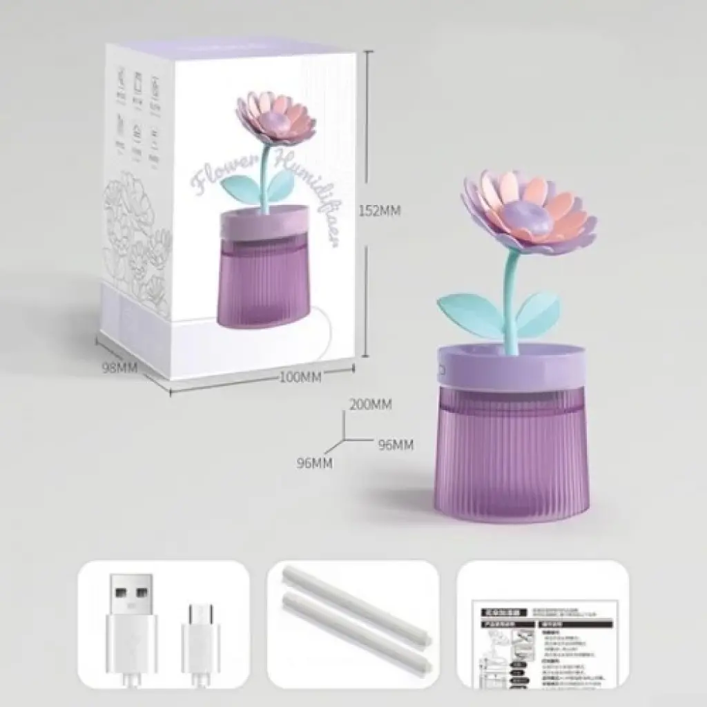 ÇİÇEK HAVA NEMLENDİRİCİÜrün AçıklamasıŞık çiçek tasarımlı bu nemlendirici, estetik görünümüyle hem dekoratif hem de işlevsel bir üründür. Üst kısmında bulunan çiçek şekli ve modern renk kombinasyonları, masa üstü veya raflarda dikkat çekici bir görünüm sunar. Ortam havasını nemlendirerek kuru havayı önler ve daha sağlıklı bir atmosfer yaratır. USB bağlantısı ile çalışarak enerji tasarrufu sağlar ve kullanım kolaylığı sunar. Kompakt ve hafif tasarımı sayesinde taşınabilir olup her ortamda kullanılabilir. Yumuşak LED aydınlatma özelliği bulunan modelleri, nemlendiriciyi aynı zamanda bir gece lambası olarak da kullanabilmenizi sağlar. Çocuk odasından ofise, yatak odasından çalışma masasına kadar farklı alanlarda hem işlevsel hem de dekoratif bir çözüm sunar.Ürün ÖzellikleriÇiçek tasarımlı nemlendirici, estetik görünümü ve şık çiçek şekliyle hem dekoratif hem de işlevsel bir üründür. Ortamın havasını nemlendirerek kuru havayı önler ve sağlıklı bir atmosfer oluşturur. USB bağlantısıyla çalışan bu ürün, enerji tasarrufu sağlar ve kullanımı oldukça kolaydır. Kompakt ve hafif tasarımı sayesinde her yerde rahatlıkla taşınıp kullanılabilir. Dayanıklı plastik malzemeden üretilmiştir ve yumuşak LED aydınlatma özelliği bulunan modelleriyle gece lambası olarak da kullanılabilir. Mor tabanı ve pastel tonlardaki çiçek deseniyle çocuk odaları, ofis masaları ve yatak odaları için mükemmel bir dekoratif aksesuar ve nemlendirici çözüm sunar.Paket İçeriği1 adet çiçek tasarımlı nemlendirici1 adet USB kabloYedek filtre çubukları