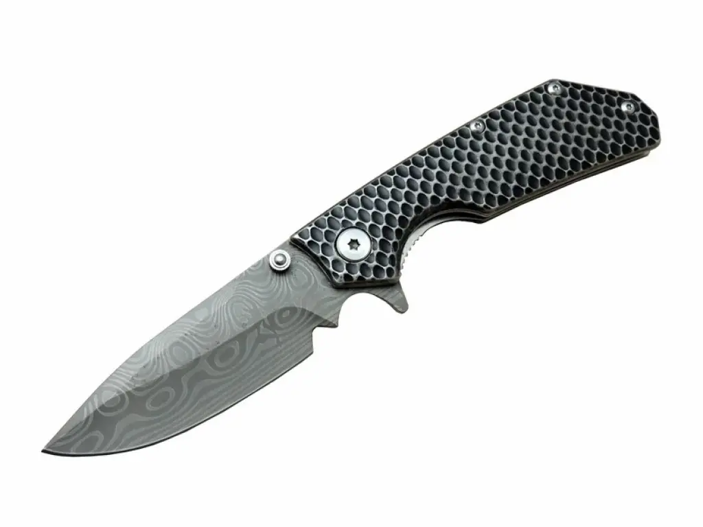 Damascus DMS 2 16 Gri Kamp Çakı, eşsiz Damascus çelik desenleriyle dikkat çeken, hem şık hem de dayanıklı bir üründür. Yarı otomatik mekanizması ve metal sapıyla hem günlük kullanım hem de zorlu outdoor koşulları için idealdir.