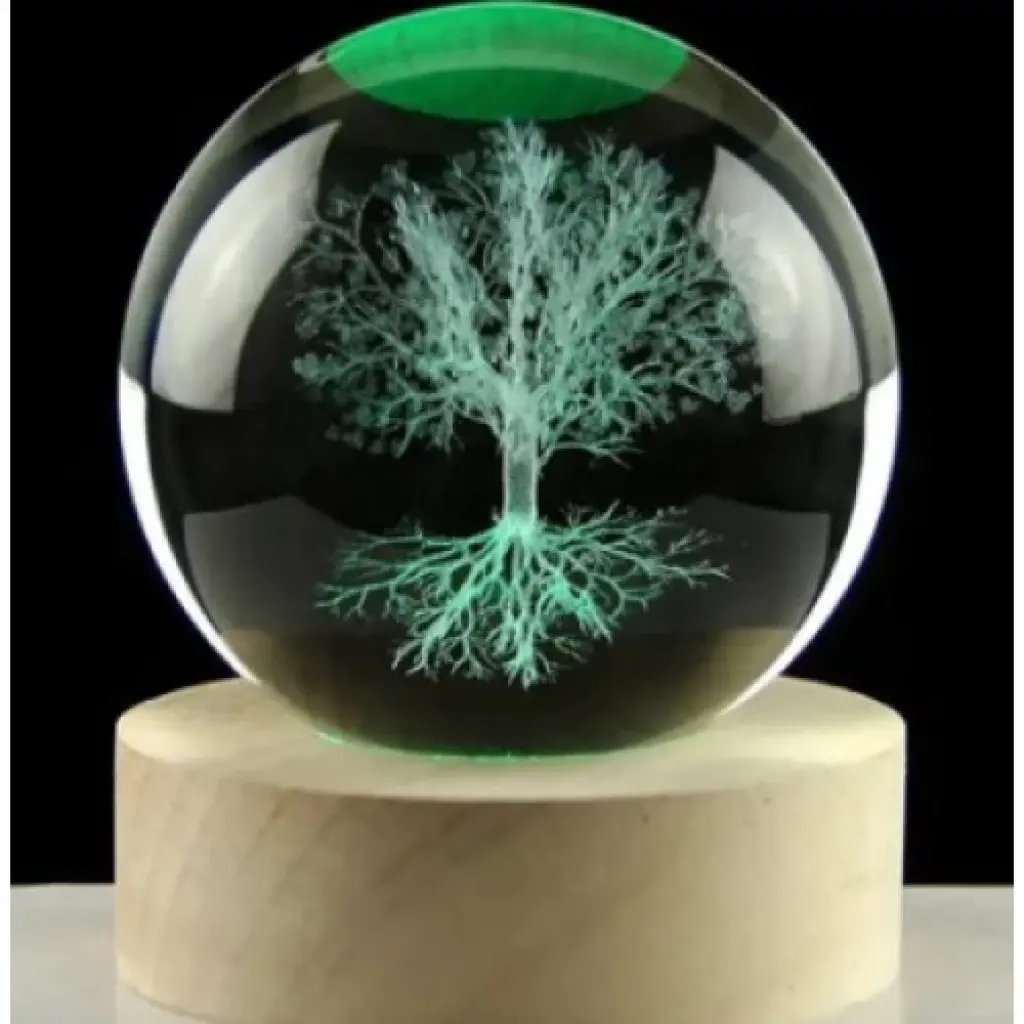 Büyük boy 8cm ağaç tasarımlı ışıklı cam küre ile odanıza doğal bir hava katın. Ahşap altlığı ve LED ışığı ile benzersiz bir gece lambası.