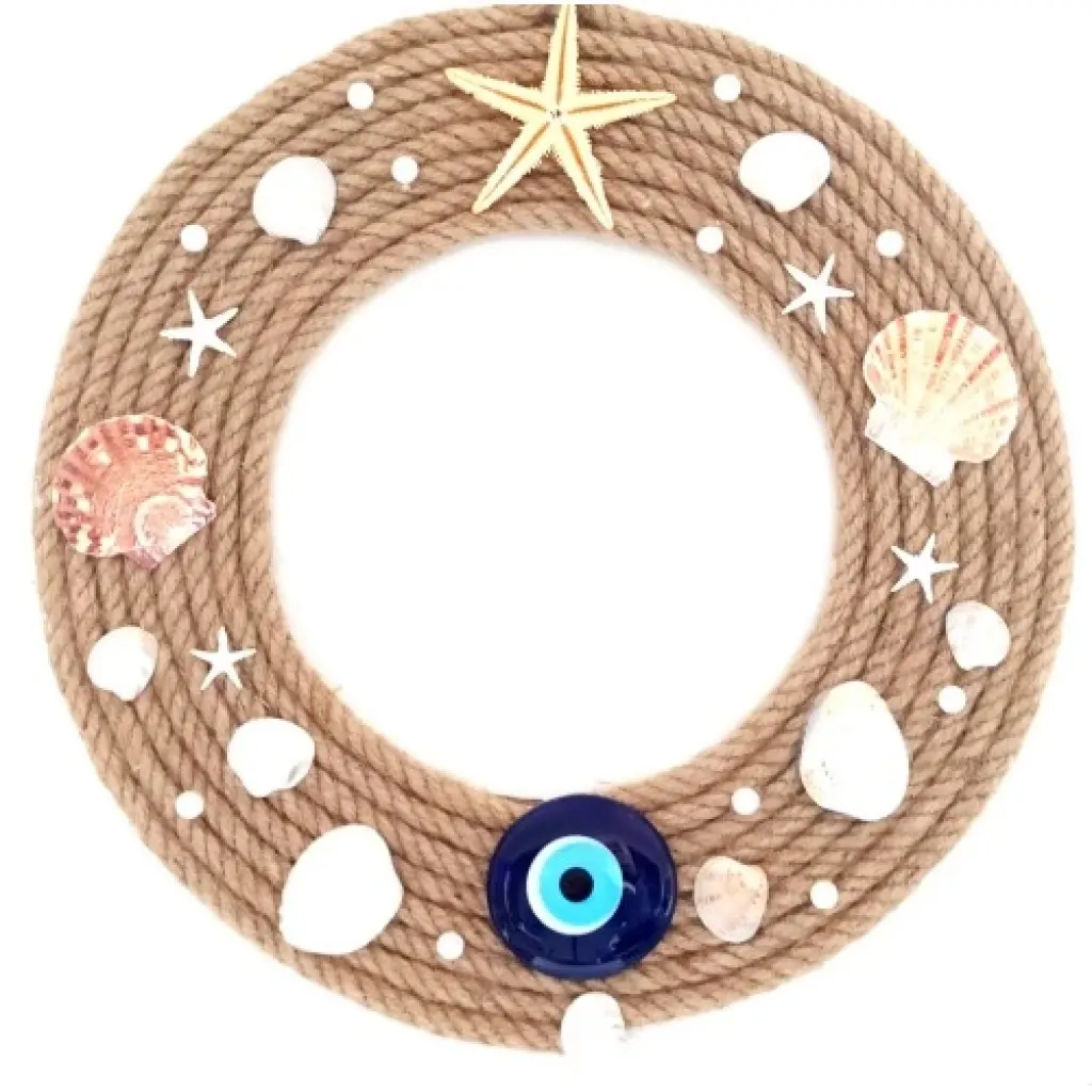 Deniz yıldızlı, nazar boncuklu, incili süsümüz 30 x 30 santimetre ölçülerindedir. El yapımı ürünümüzü ister kendiniz için, isterseniz sevdiklerinize hediye etmek için tercih edebilirsiniz.