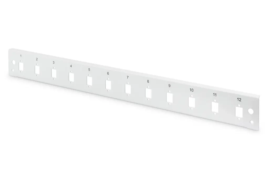 Digitus Fiber Optic Splice Box Front Panel for DN-96200-QL, Quick Lock, 12 x LC Duplex SC Simplex, E2000 Simplex Vertically, 1U, Varnished Steel Sheet, Color Grey (RAL 7035)