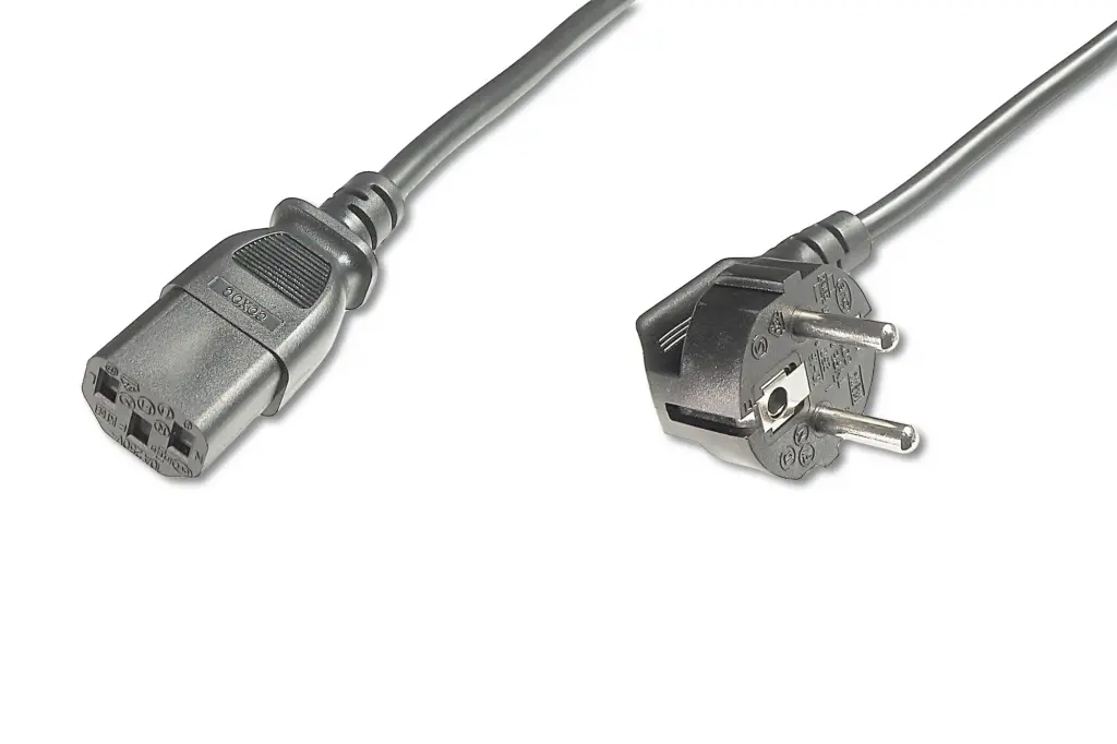 Digitus Güç Kablosu, C13 dişi - CEE 7/7 (Tip-F) erkek 90 derece, 5 metre, H05VV-F3G 1.0qmm, siyah renk