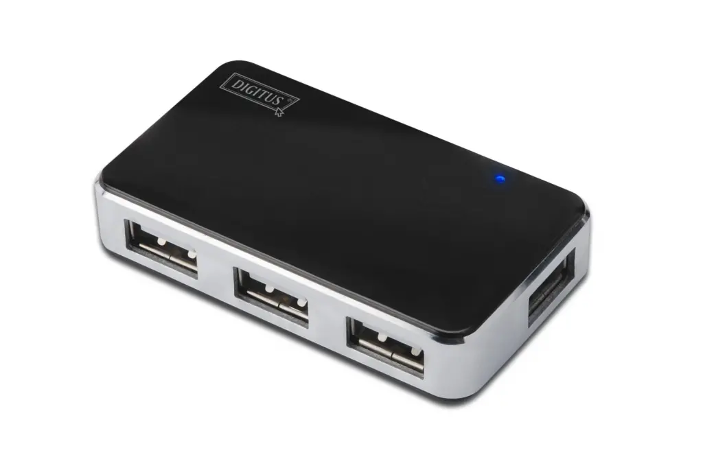Digitus USB 2.0 4 Port Hub, 4 x USB A Dişi, 1 x USB B Mini Dişi, güç adaptörlü, plastik