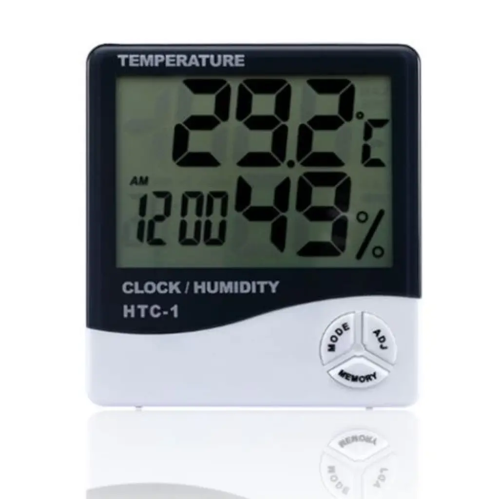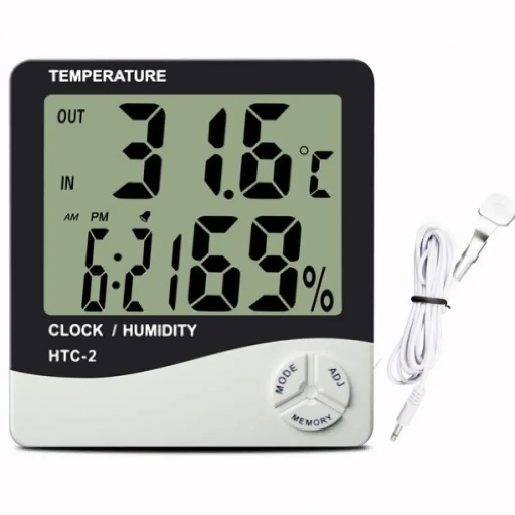 DİJİTAL TERMOMETRE NEMÖLÇERDijital Termometre Ve Nem Ölçer ileevinizin ısısını ve nem oranını sürekli kontrol altında tutabilirsiniz !Dijital Termometre NemÖlçer, bebeğiniz ve sizin için en uygun ısı aralıklarını sizler içingösteriyor. Ürün Özellikleri12 ve 24 saat modu ile çalışma.Sıcaklık ve nem göstergesi.Açılır kapanır klipsi ile düz zemindesabitlenebilir.1 adet AAA Pil ile çalışır. Ürün Ölçüleri138 gr.Beyaz renk. Paket İçeriği1 adet dijital termometre nem ölçer