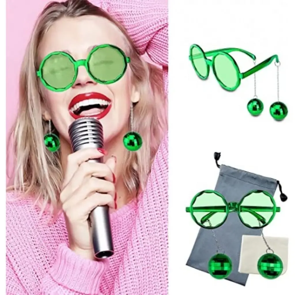 DİSKO TOPLU KÜPELİ PARTİ GÖZLÜĞÜ YEŞİL RENKÜrün ÖzellikleriModel: Disko toplu, küpeli parti gözlüğü.Renk: Yeşil, canlı ve dikkat çekici.Tasarım: Parlak disko topu detayı ve küpeli tasarım, partiler için şık bir aksesuar.Kullanım Alanı: Parti, doğum günü kutlamaları, yılbaşı etkinlikleri veya herhangi bir özel gece için mükemmel.Malzeme: Hafif ve dayanıklı, rahat kullanım sağlar.Boyut: Genel yetişkin boyutu, şıklığınızı tamamlar.Paket İçeriği1 adet Disko Toplu Küpeli Parti Gözlüğü - Yeşil Renk