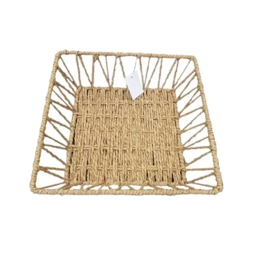 Doğal Örgü Kare SepetÜrün Açıklaması:Doğal örgü kare sepet, estetik ve işlevselliği bir arada sunan bir dekoratif aksesuardır. Sağlam ve şık tasarımı ile mutfakta, salonda veya herhangi bir yaşam alanında küçük eşyaları düzenlemek ya da sunum amaçlı olarak kullanılabilir. Yüksek kaliteli doğal malzemeden üretilmiştir ve evinize sıcak bir atmosfer katar.Özellikler:Malzeme: Doğal hasırRenk: Natürel hasır dokusuBoyut: Kare şeklinde yaklaşık 25 x 25 cmKullanım Alanları: Mutfak, banyo, salon ve dekorasyon amaçlı çok yönlü kullanımPaket İçeriği:1 adet Doğal Örgü Kare Sepet