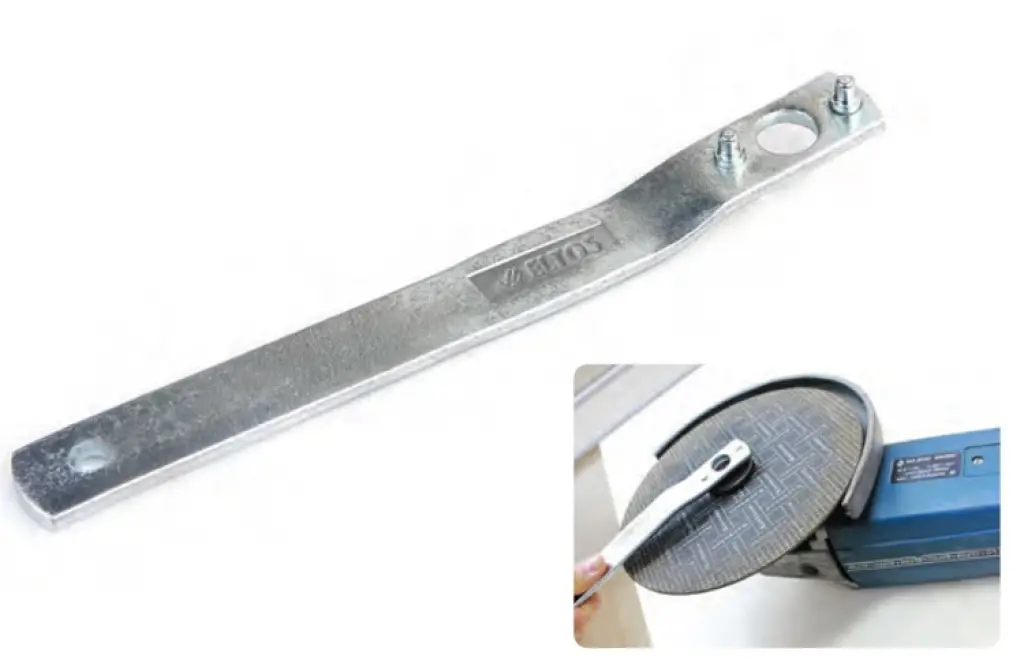 Taşlama Somun Anahtarı - Büyük, taşlama makinelerinde kullanılan kesme veya taşlama disklerini sıkıca sabitlemek ve sökmek için özel olarak tasarlanmış bir alettir. Özellikle büyük çaplı taşlama disklerini kullanan profesyonel veya amatör kullanıcılar için ideal bir seçenektir.