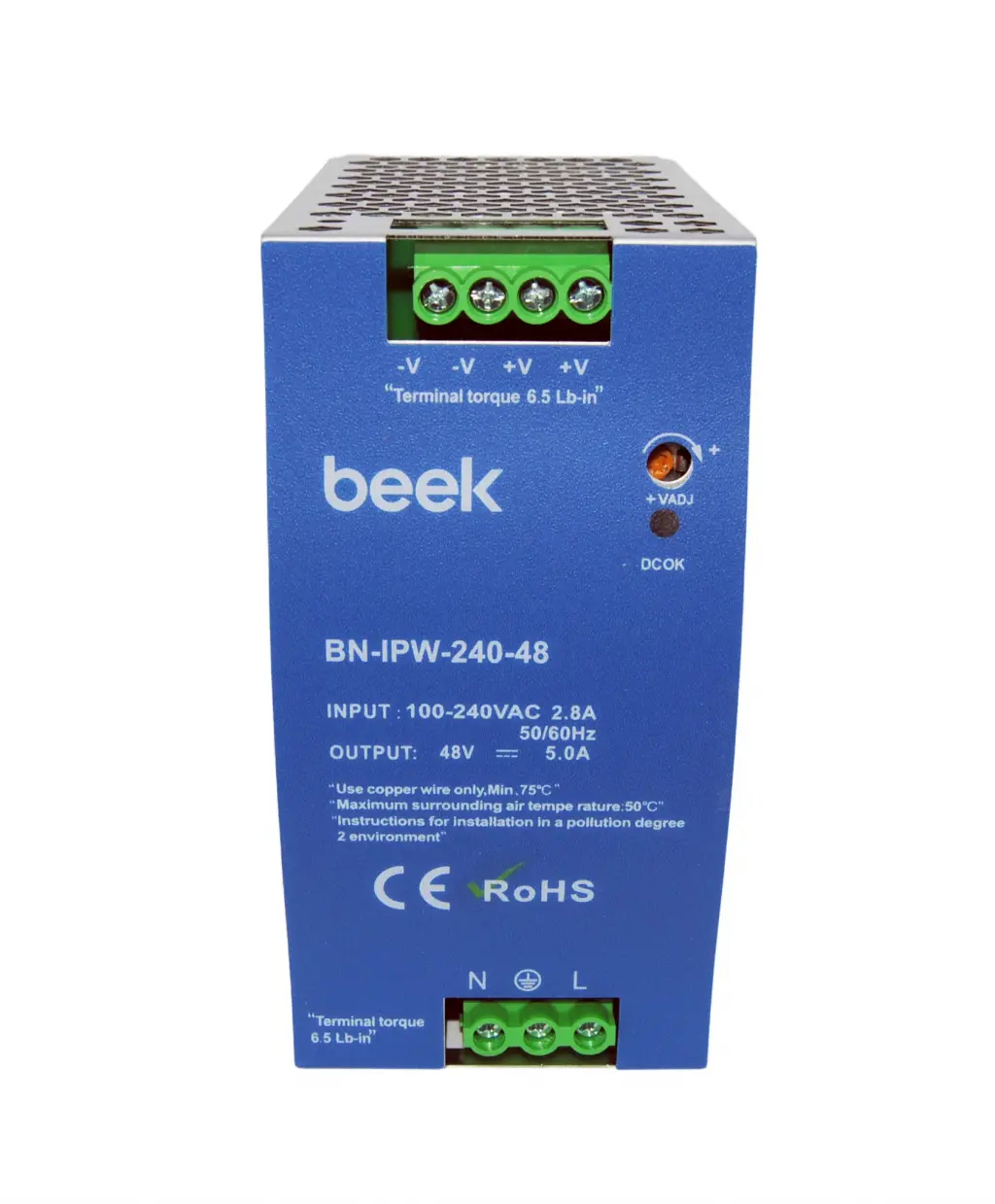 Endüstriyel 240 Watt AC DC Güç Kaynağı, DIN-Ray Montajına Uygun, 48V/5A çıkışlarIndustrial 240-Watt AC to DC Power Supply, DIN-Rail Mount, 48V/5A outputs