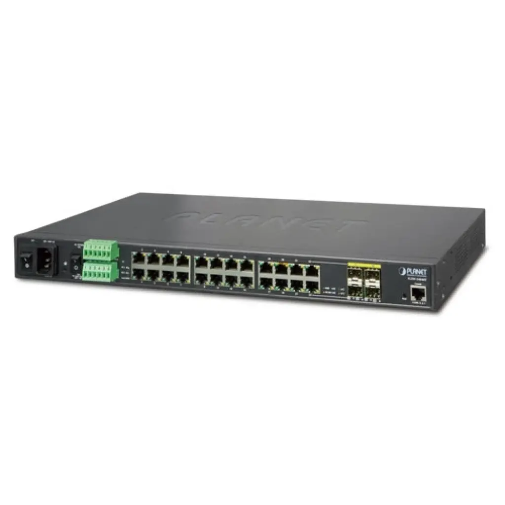 Endüstriyel Tip L2+ Yönetilebilir Ethernet Switch (Industrial L2+ Managed Ethernet Switch)<br>24-Port 10/100/1000T<br>4 x 1000BASE-SX/LX/BX SFP/mini-GBIC yuva (Combo Port-21 ile Port-24