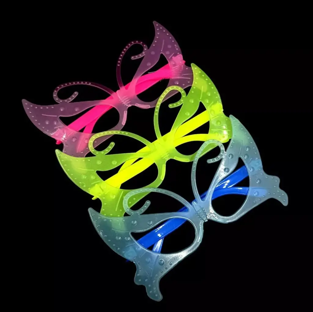 Fosforlu Kelebek Model Parti Gözlüğü Karanlıkta Yanan Gözlükler 12 Adet