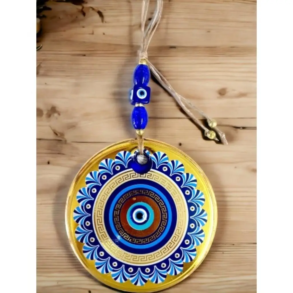 Gold Cam Üzeri Mavi Motifli Nazar Boncuklu Göz Detaylı Duvar Süsü