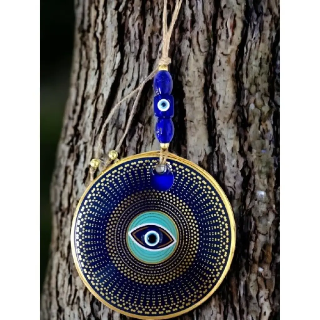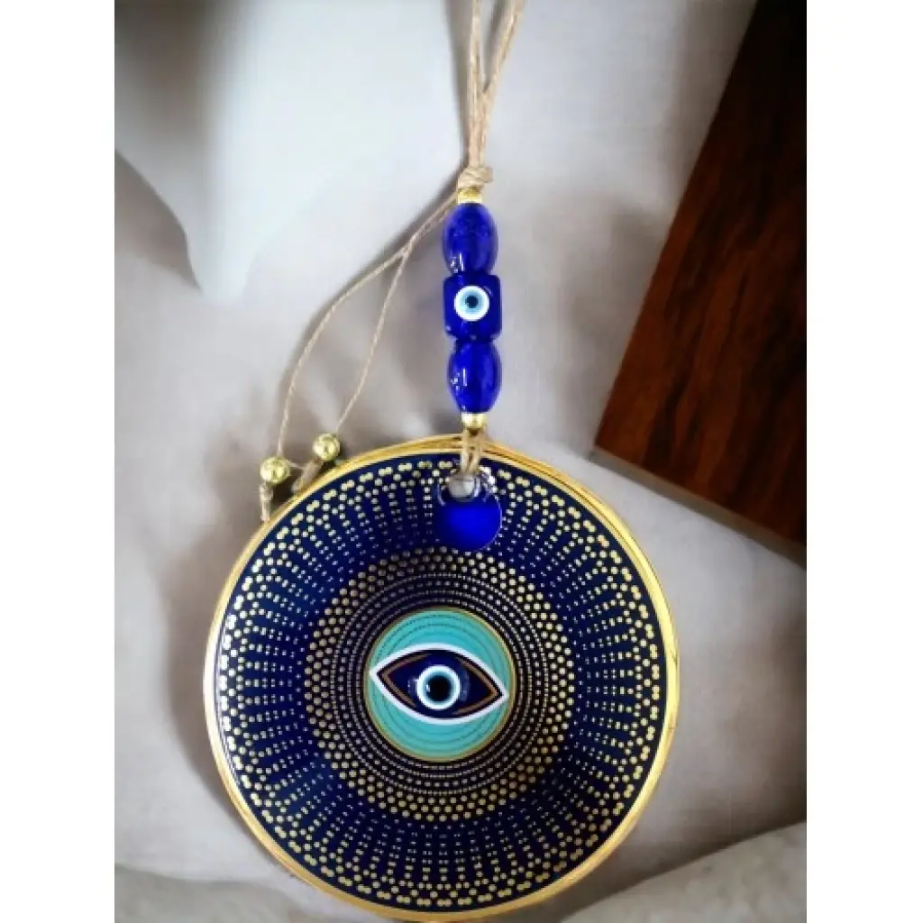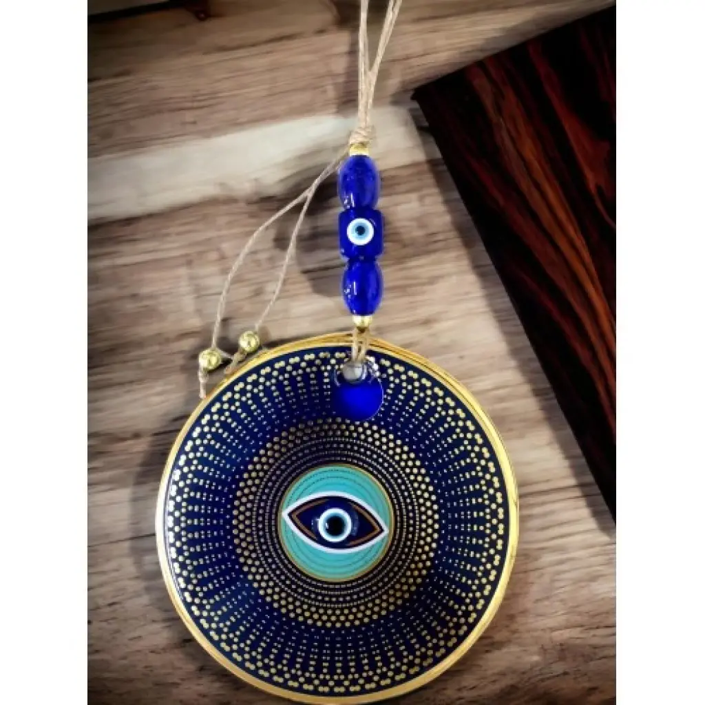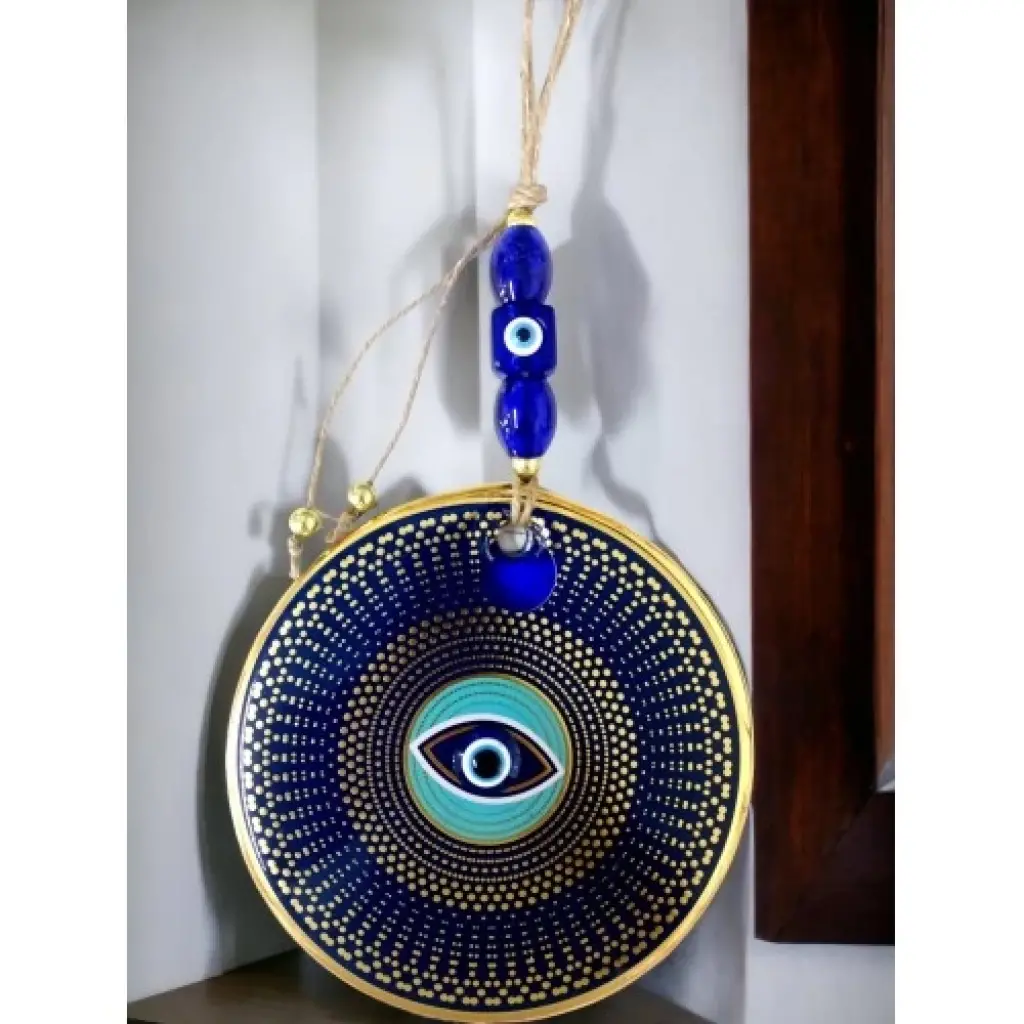 Gold Puantiyeli Nazar Boncuklu Göz Duvar Süsü Cam Duvar Dekoru