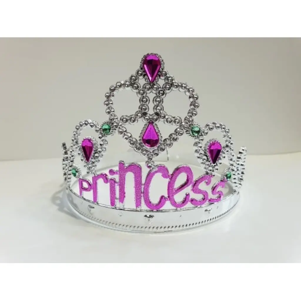 Gümüş Renk Prenses Yazılı Parti Tacı 60 cm