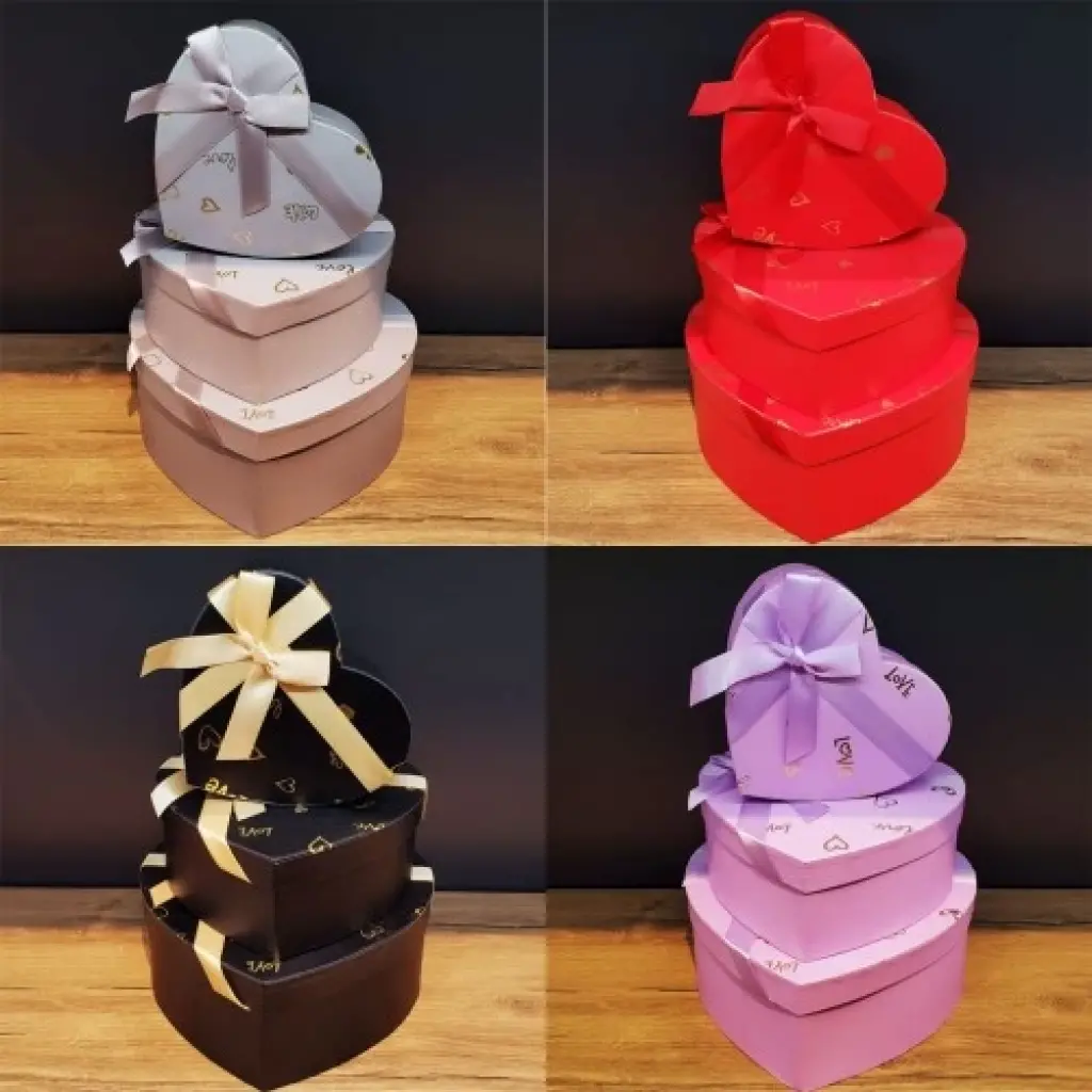 Hediye Kutusu 3'lü Set 3'lü Hediye kutusu görünümü ve tasarımı ile oldukça şık görünmektedir.Hediye kutusu içerisinde büyükten küçüğe doğru kutular çıkmakta olup koyacağınız ürünü istediğiniz boyuta göre süsleyebilirsiniz.3'lü Hediye kutusu kurdeleli renkleride oldukça hoş olup yapacağınız hediye setleri vazgeçilmez ürünlerden olacak.Hediye Kutusu sevgililer günü doğum günü hediyesi gibi özel günlerde hediye sunumlarında kullanabileceğiniz hediye kutularından.Hediye Kutusu, 3'lü Hediye Kutusu Özellikleri:* Sert karton malzemeden üretilmiştir.* Hediye kutusu 3lü olup büyükten küçüğe doğru çıkmaktadır.* Canlı ve rengarenk renkler karışık gönderilmektedir.* Tasarımı görünümü oldukça şıktır.* Özel Günlerde hediye sunumu yapabileceğiniz şık hediye kutusudur.Hediye Kutusu, Toptan 3'lü Hediye Kutusu Ölçüsü:* Büyük boy Hediye Kutusu = 15.5 cm x 22.5 cm x 5.5 cm dir.* Orta boy Hediye Kutusu = 14 cm x 20.5 cm x 7.5 cm dir* Küçük boy Hediye Kutusu = 12.5 cm x 18.5 cm x 5,5 cm dir