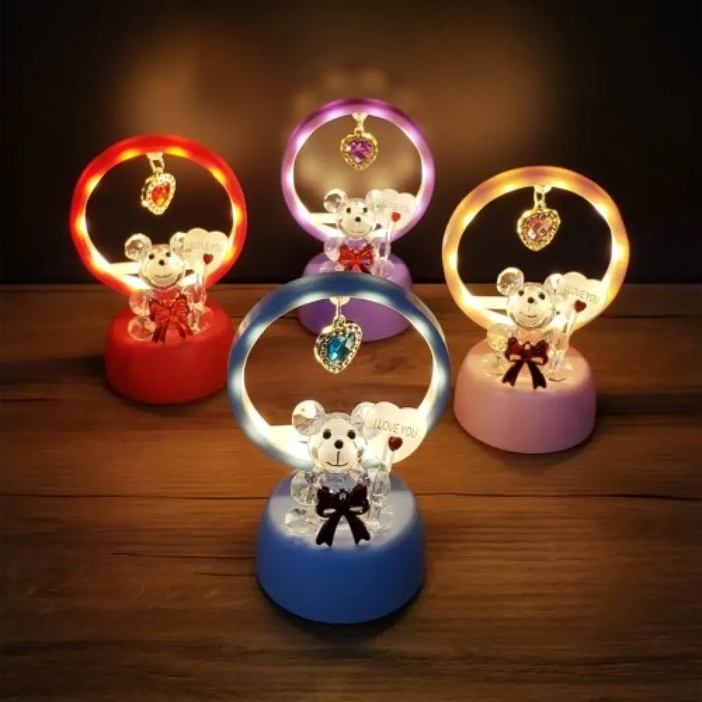 Işıklı I Love You AyıcıkÜrün Açıklaması:Romantik ve sevimli tasarımıyla dikkat çeken Işıklı I Love You Ayıcık, özel günlerde duygularınızı ifade etmenin en tatlı yoludur. Kristal görünümlü gövdesi, asılı kalp motifi ve rengarenk ışıklarıyla hem gece lambası hem de dekoratif biblo olarak kullanılabilir.Karanlıkta yakıldığında ortama sıcak ve romantik bir atmosfer katar. Sevgililer Günü, doğum günü veya yıl dönümü gibi özel günlerde hediye etmek için harika bir tercihtir.Ürün Özellikleri:Kaliteli plastik malzemeKristal görünümlü ayıcık tasarımıI Love You yazılı kalp balon detayıAskısında kalp motifi bulunmaktadırKarışık renklerde gönderilir3 adet ince kalem pil ile çalışır (piller dahil değildir)Boyut: 13 cm x 7 cmKullanım Alanları:Yatak odası dekorasyonuHediye amaçlı kullanımGece lambası olarak ortam aydınlatmasıSevgililer Günü, doğum günü, yıl dönümü hediyesiPaket İçeriği:1 x Işıklı I Love You Ayıcık