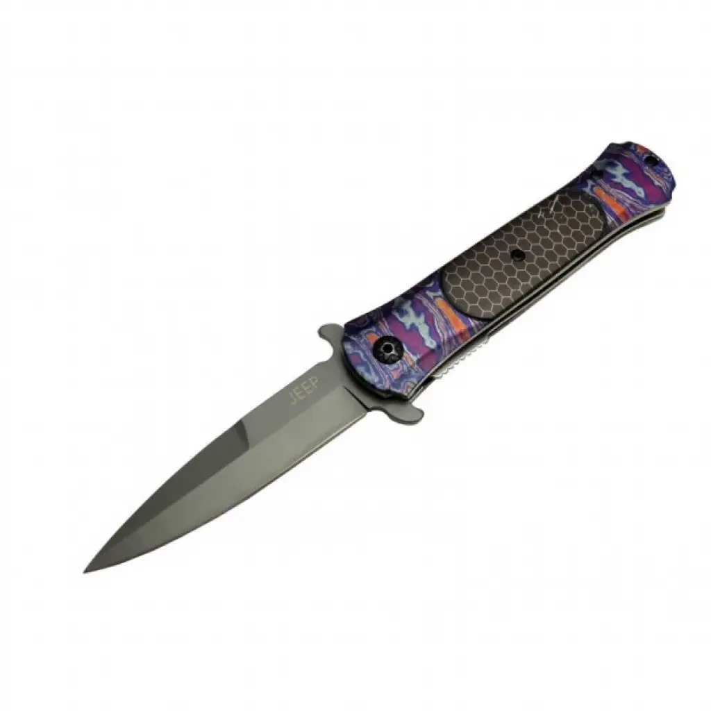 Ürün Tanımı: Jeep Çakı Mor, estetik tasarımı ve fonksiyonelliği ile dikkat çeken bir outdoor çakısıdır. 22 cm uzunluğundaki yarı otomatik bıçağı, hem günlük kullanımda hem de doğa aktivitelerinizde güvenilir bir yardımcıdır. Kemerlikli tasarımı sayesinde çakıyı her zaman erişilebilir ve güvenli bir şekilde taşıyabilirsiniz.