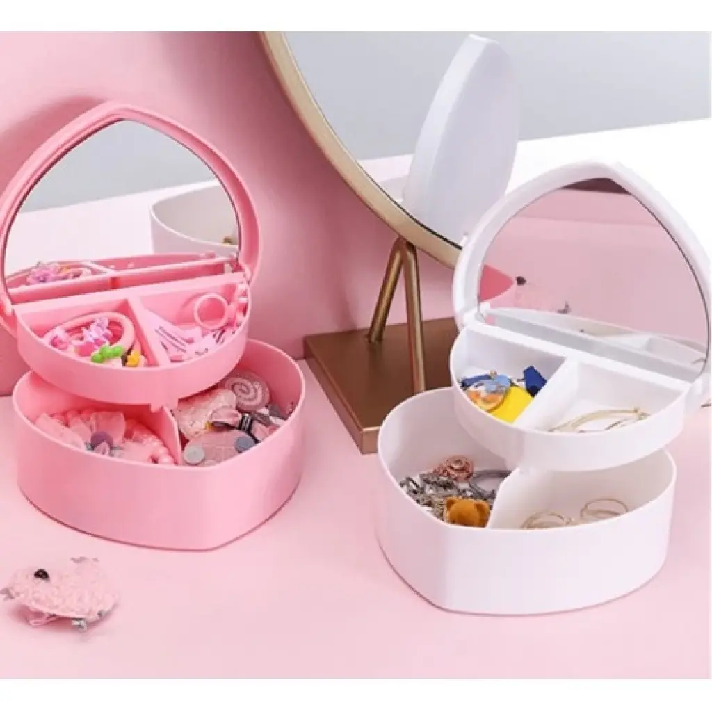 Kalp Tasarımlı Aynalı Takı Saklama KutusuÜrün ÖzellikleriKalp şekilli takı saklama kutusuİki katlı tasarım, çeşitli takıları saklamak için uygundurSevimli görünüm, ayna dahil, boyutu küçük , taşıması kolaydır.Paket İçeriği1 Adet Kalp Tasarımlı Aynalı Takı Saklama Kutusu