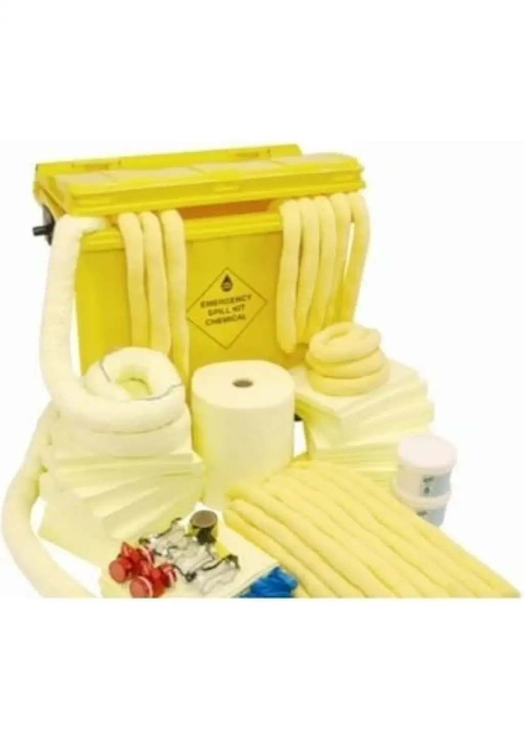 Ulusal ve Uluslararası standartlara uygun kolay taşınabilir tekerlekli konteyner içerisinde bulunan tüm malzemeler 500ltlik kimyasal döküntüleri temizlemek için hazırlanmış geniş kapsamlı bir kittir. orta ve büyük ölçekli işyerinde orta ölçekli sanayi merkezlerinde, kimyasal depolama alanlarında ve lojistik merkezlerde kullanılır.