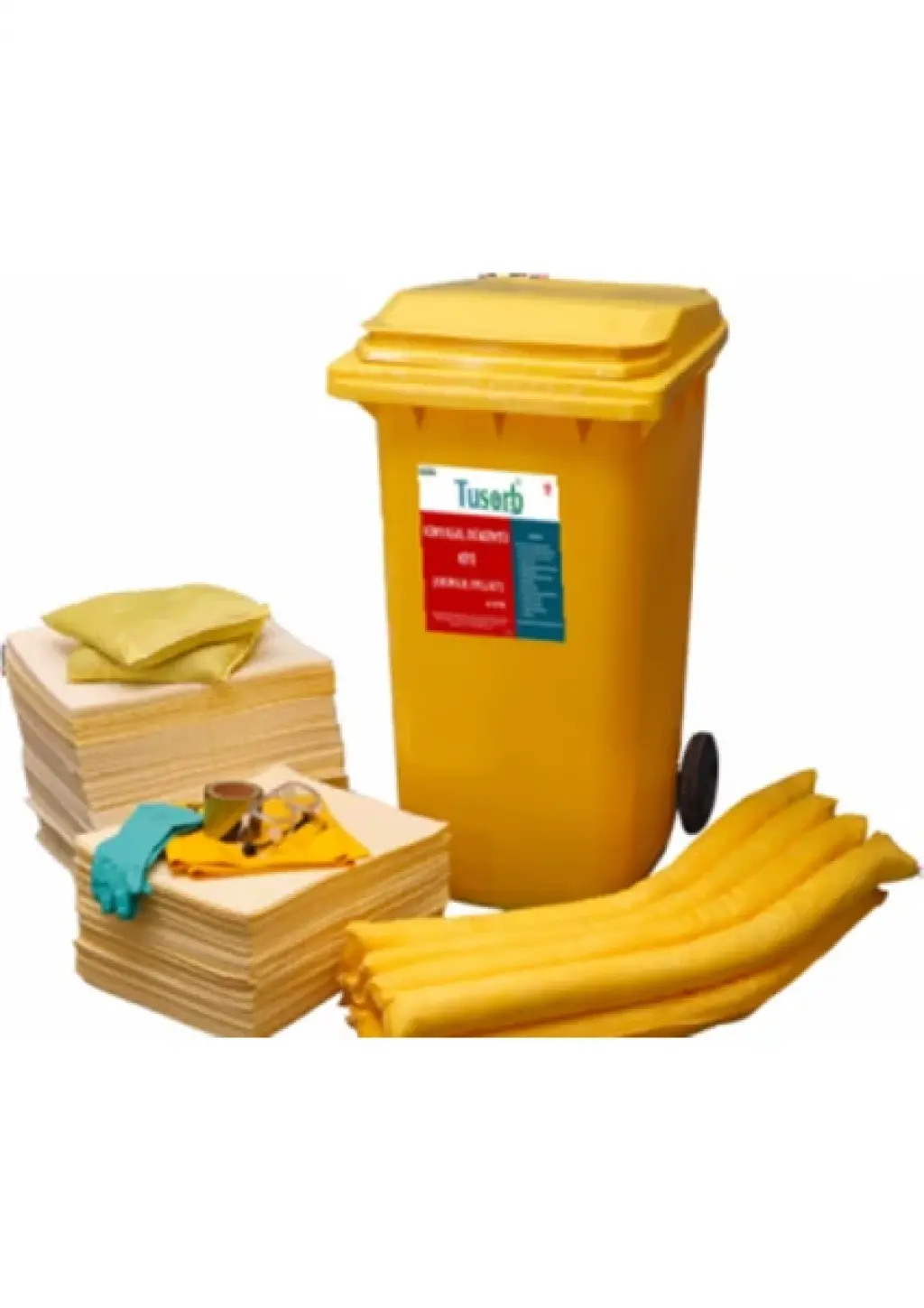 KİT: Kimyasal emici absorban maddeler, kişisel koruyucu ekipmanlar ve tehlikeli atık torbaları ile kimyasal döküntü,sızıntı ve damlamalara karşı etkili temizlik sağlayan malzemelerin hepsini tekerlekli konteyner içerinde bir arada bulundurur .