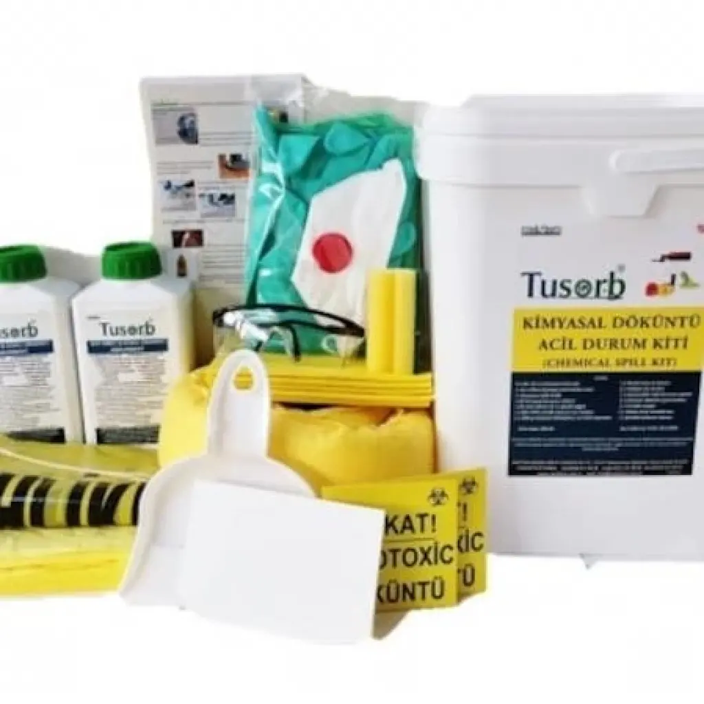 Ulusal ve Uluslararası standartlara uygun kolay taşınabilir plastik çanta içerisinde bulunan tüm malzemeler kimyasal döküntüleri temizlemek için hazırlanmış geniş kapsamlı bir kittir. Hastaneler, laboratuvarlar Veterinerler, küçük kimyasal depolama alanları, küçük ölçekli tüm kimyasal risk taşıyan alanlarda bulundurulması zorunlu kapsamlı bir kittir.
