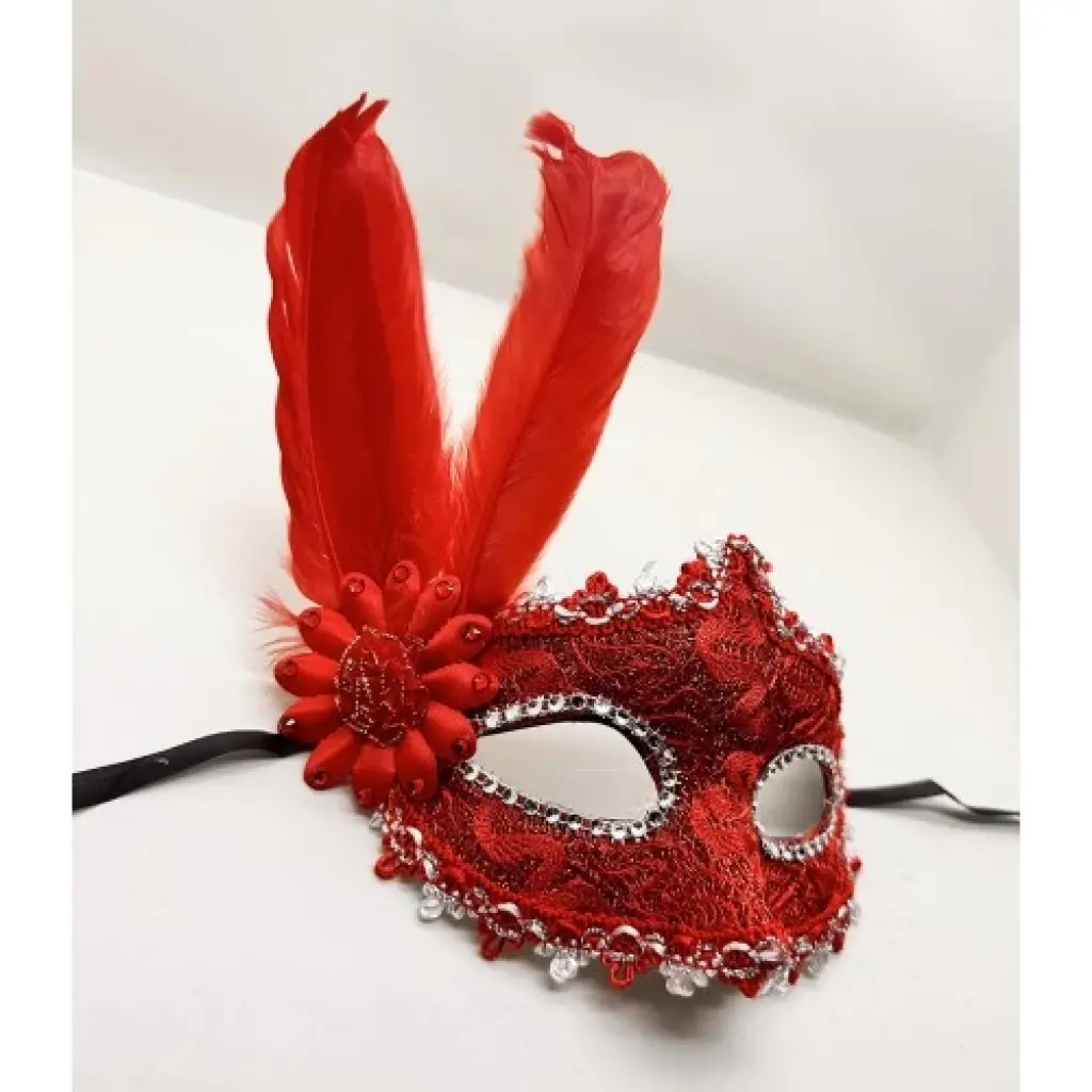 KIRMIZI RENK TÜYLÜ DANTELLİ GÖZLERİ TAŞLI BALO PARTİ MASKESİÜrün ÖzellikleriKırmızı renk tüylü dantelli balo parti maskesi, zarif ve şık tasarımıyla dikkat çeker. Göz çevresindeki taş detayları, dantel işlemeleri ve üst kısmındaki tüylü süslemeler, maskeye etkileyici bir görünüm kazandırır. Hafif ve dayanıklı yapısıyla rahat bir kullanım sunar. Maskeli balolar, partiler, temalı etkinlikler ve özel günler için idealdir. Esnek lastik bandı sayesinde kolayca takılıp çıkarılabilir ve yüzünüze tam uyum sağlar.Bu maske, özel etkinliklerde etkileyici bir görünüm oluşturmak ve unutulmaz bir stil yaratmak için mükemmel bir seçenektir.Paket İçeriği1 adet Kırmızı Renk Tüylü Dantelli Gözleri Taşlı Balo Parti Maskesi