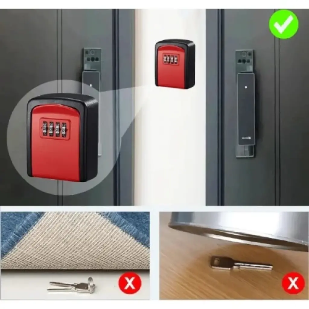 KIRMIZI ŞİFRELİ ANAHTAR VE EŞYA SAKLAMA GÜVENLİK KASASIÜrün ÖzellikleriKırmızı şifreli anahtar ve eşya saklama güvenlik kasası, ev, yazlık, ofis veya Airbnb dairelerinde güvenli anahtar teslimatı için tasarlanmıştır. 10 cm x 7 cm ölçülerinde ve 3,5 cm derinliğe sahip olan bu kasa, dört haneli şifreli mekanizması ile binlerce farklı kombinasyon seçeneği sunar. Sert plastik malzemeden üretilmiş olup, paslanmaz yapısıyla zorlu hava koşullarına karşı dayanıklıdır. Şifre değiştirme özelliği sayesinde güvenliğinizi kolayca güncelleyebilirsiniz. Şifre belirlemek ve değiştirmek için kasa açıkken şifre pimini B konumuna getirip şifreyi belirleyin pimi A konumuna getirdiğinizde artık yeni şifre geçerli olacaktır.Anahtarınızı içine koyarak güvenle saklayabilir, şifreyi bilen kişilerin kolayca erişmesine imkan tanıyabilirsiniz. Özellikle dış mekanlarda pratik kullanım imkânı sağlar.Paket İçeriği1 adet Kırmızı Şifreli Anahtar ve Eşya Saklama Güvenlik Kasası