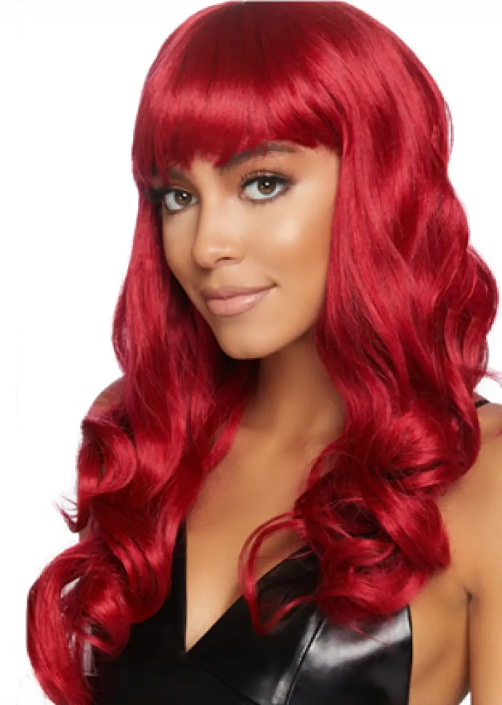 Kızıl Renk Dalgalı Uzun Parti Peruğu