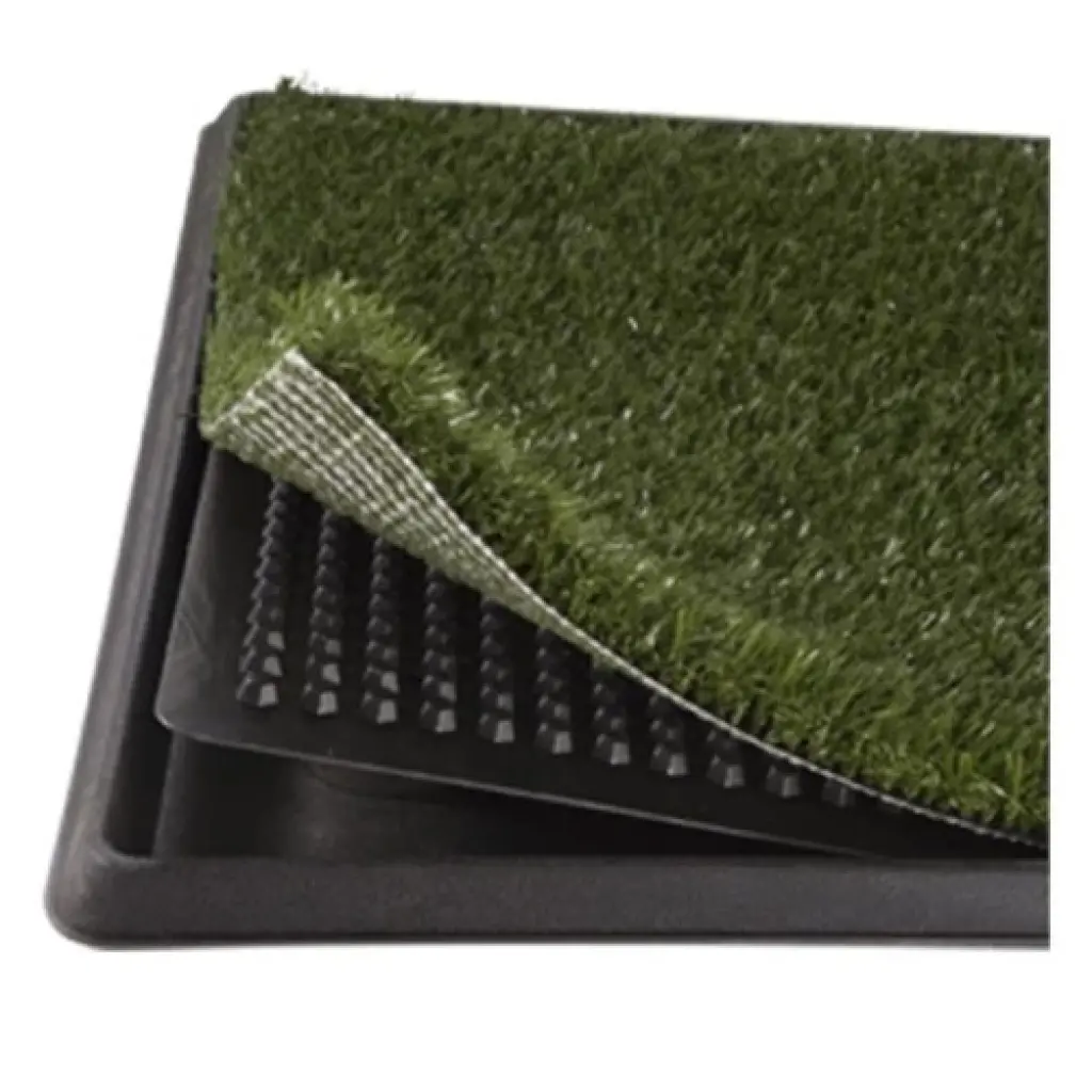 Köpek Tuvalet Eğitim Seti: Minik Dostunuz İçin Pratik ve Hijyenik Bir Çözüm!Yavru köpeğinizin tuvalet eğitimini kolaylaştırmak ve evinizi temiz tutmak ister misiniz?Köpek tuvalet eğitim seti, yavru köpeğinizin tuvalet ihtiyacını karşılaması için özel olarak tasarlanmış pratik ve hijyenik bir üründür. Evde tuvalet eğitimi sırasında size büyük kolaylık sağlayacak bu ürün, köpeğinizin temizlik alışkanlıklarını kazanmasına yardımcı olur.Ürün Özellikleri:3 Katmanlı Yapı: Sentetik çim tabaka, yükseltilmiş ızgara ve toplama tablası olmak üzere üç katmandan oluşur.Gerçek Çim Görünümü: Köpeğinizin doğal ortamını aratmayan bir deneyim sunar.Sıvı Tutma Özelliği: Özel tasarımı sayesinde sıvıyı emerek, kötü kokuların oluşmasını engeller.Kolay Temizlik: Üst yüzey sabunlu su ile temizlenebilir, alt tabla ise kolayca boşaltılabilir.Taşınabilir: Evde farklı yerlerde veya seyahatlerde kullanılabilir.Güvenli Malzeme: Köpeğinizin sağlığına zarar vermeyen, toksik olmayan malzemelerden üretilmiştir.Avantajları:Hızlı Tuvalet Eğitimi: Köpeğinizin tuvalet alışkanlıklarını kazanmasına yardımcı olur.Ev Temizliği: Evde istenmeyen kazaları önler, temizliği kolaylaştırır.Hijyen: Bakteri üremesini engeller, hijyenik bir ortam sağlar.Ekonomik: Tek kullanımlık pedlere göre daha ekonomiktir.Pratik Kullanım: Kurulumu ve temizliği oldukça kolaydır.Kullanım Alanları:Ev İçinde: Köpeğinizin tuvalet ihtiyacını karşılamak için evinizin herhangi bir köşesinde kullanılabilir.Apartman Daireleri: Dar alanlarda bile pratik bir çözümdür.Seyahat: Seyahat ederken yanınızda taşıyabilirsiniz.Nasıl Kullanılır?Yer Seçimi: Köpeğinizin sıklıkla vakit geçirdiği bir yer seçin.Kurulum: Seti düz bir zemine yerleştirin.Eğitim: Köpeğinizi düzenli olarak sete alarak tuvaletini yapmasını sağlayın.Temizlik: Üst yüzeyi sabunlu su ile temizleyin, alt tablayı boşaltın.Ürün Ebatları47 cm * 34 cm * 3.8 cm