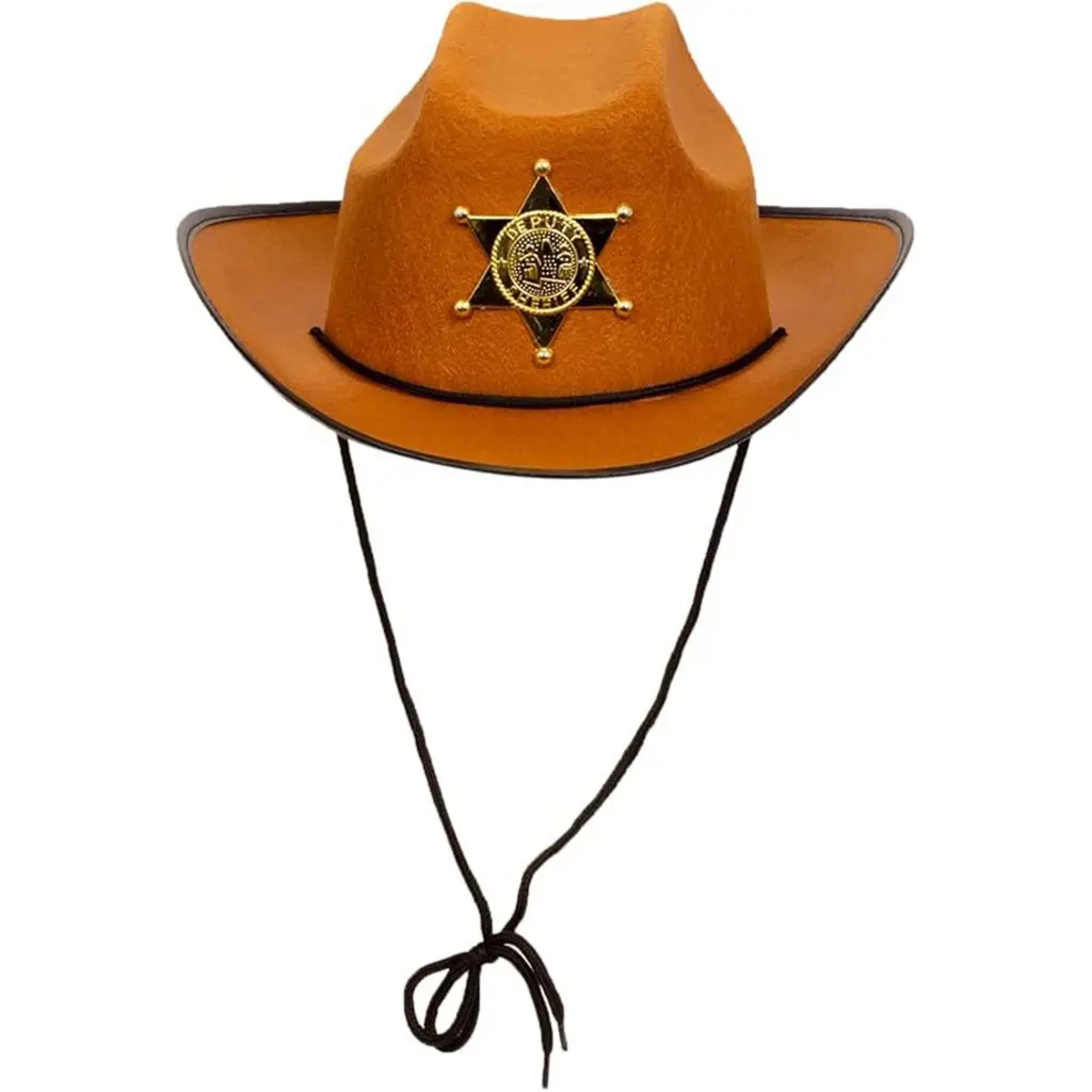 Kovboy Şerif Şapkası Kahve 12 Adet - Kostüm Parti ve Gösteri Şapkası