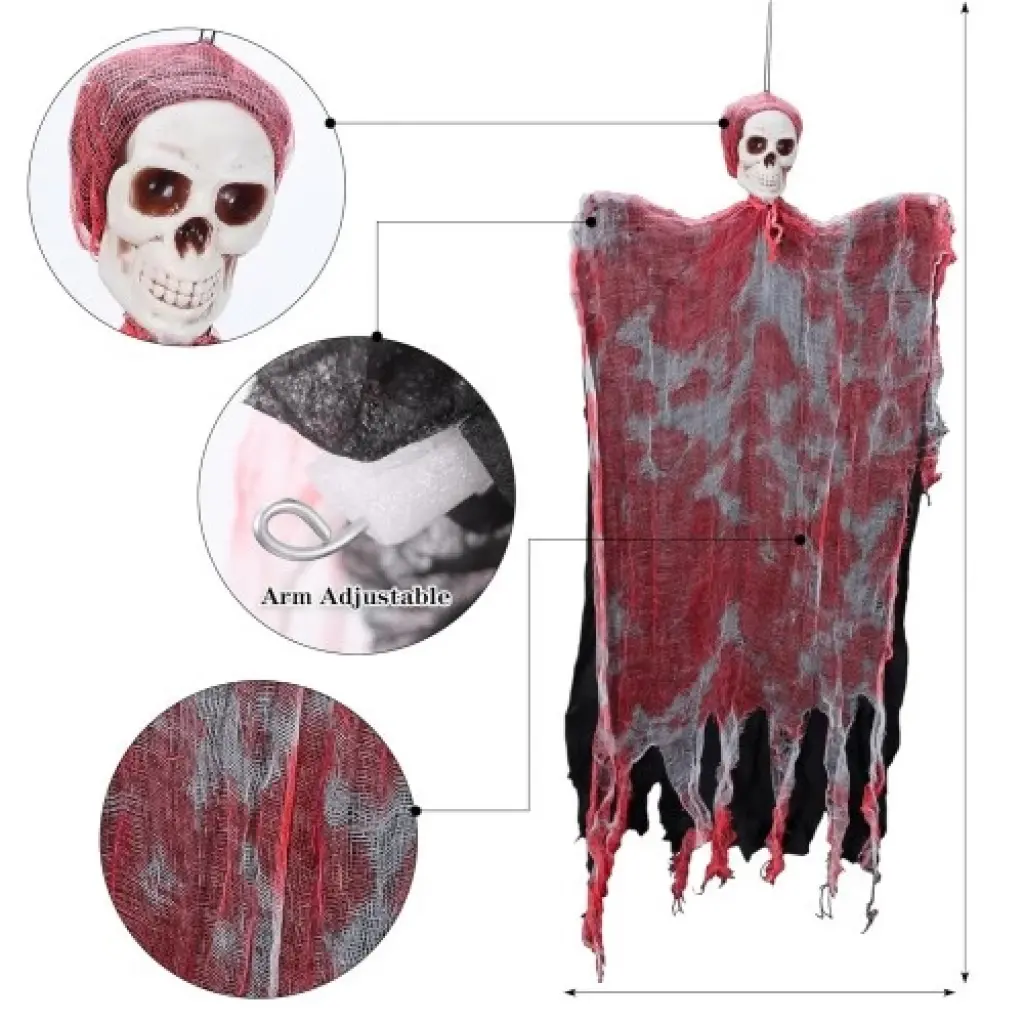 Led Işıklı Kahkaha Atan Sesli Sensörlü Ürpertici Kuru Kafa Kanlı Korku Hayalet Saçaklı Dekor 90x50 cmÜrün Özellikleri:"LED ışıklı, kahkaha atan sesli, sensörlü ürpertici kuru kafa, kanlı korku hayalet saçaklı dekor 90x50 cm" tanımını içeren bu ürün, Cadılar Bayramı (Halloween) veya korku temalı etkinlikler için dekoratif bir aksesuardır. Bu dekorasyon öğesi 90x50 cm boyutlarındadır ve dikkat çekici bir şekilde tasarlanmıştır.Paket İçeriği:1 Adet Led Işıklı Kahkaha Atan Sesli Sensörlü Ürpertici Kuru Kafa Kanlı Korku Hayalet Saçaklı Dekor 90x50 cm
