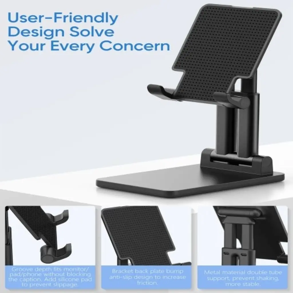 Masaüstü Telefon ve Tablet TutucuTabletiniz akıllı telefonlarınız için ideal tutucu stand. Evrensel tablet ve telefon tutucu ile ekranın her yerde ve her zaman mükemmel açıyla görüntülenmesini sağlamak için tasarlanmıştır.Tercih ettiğiniz göz seviyesinde mükemmel ekran görüntüleme için ayarlanabilir. Yüksek kaliteli tablet standı, telefon tutucu elektronik cihazınızı güvende tutacak ve kaymayı düşmeyi ve hasar almayı önleyecek stabilite sağlam telefon ve tablet standı.Masaüstü telefon ve tablet standı ile telefonunuzu standa yerleştirip film, futbol maçları, veya birçok işinizi rahatça halledebilirsiniz.Masaüstü telefon ve tablet tutucu stand Oynar başlıklı özelliği ve tasarımı oldukça dikkat çekmektedir.Telefon tutucuyu istediğiniz gibi aşağı yukarı hareket ettirebilir istediğiniz açıda ayarlayabilirsiniz.Masaüstü telefon ve tablet standı ayrıca sarj standıda olarak kullanabilirsiniz.Katlanabilir tasarımı ile kullanmadığınız zaman yer tasarrufu sağlamak için telefon standını daha küçük boyuta katlayabilirsiniz.Portatif Telefon Tutucu Özellikleri:* Kaliteli Plastik malzemeden üretilmiştir.* Konfor yüksekliği ayarlamak için 0-72 derece ayarlanabilir yukarı aşağı hareket edebilir.* Katlanabilir tasarım telefon ve tablet tutucu.* Cihazlarınızı tutmak için daha istikrarlı güvenlik sağlayan ağırlık eklenmiş taban ekrana dokunduğunuz zaman bile telefon veya tablet için endişelenmenize gerek kalmayacak.* Oynar başlı telefon tutucu ile istediğiniz açıda telefon veya tabletinizi kullanabilirsiniz.* Karışık renklerde gönderilmektedir.* Çok amaçlı telefon tutucu, tablet tutucu tasarımı şık görünüme sahiptir.* Sarj standı olarak da kullanılabilir.Masaüstü Telefon Tutucu Ölçüsü: 17 cm x 11.3 cm x 6.5 cm